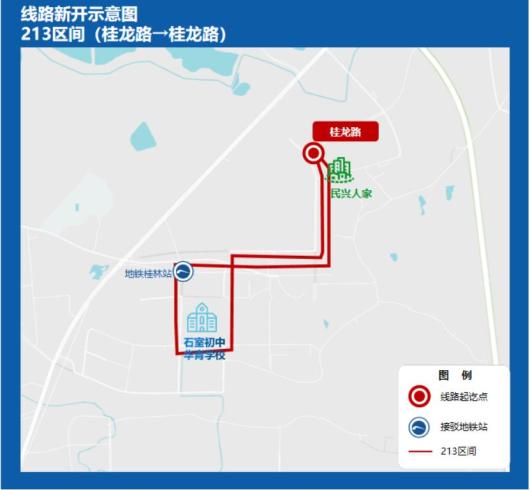 运营优化措施:(1)原桂香四路乘客可通过213区间到达地铁桂林站乘坐地铁8号线或换乘20路到达地铁同乐前往北湖公交站。(2)新开213区间发车频率为5-10分钟。