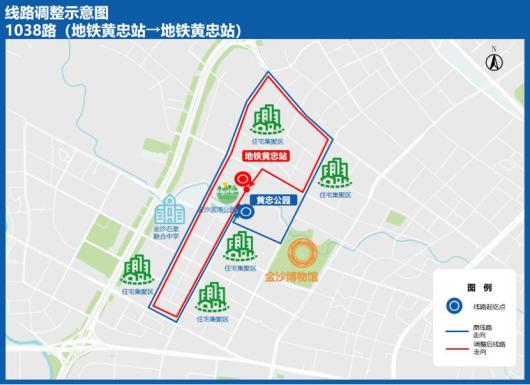 线路走向:从地铁黄忠站发出,经同怡路、蜀金路至黄忠路行驶路线及站点不变,调整经黄苑街、同怡路至地铁黄忠站(终点站)。