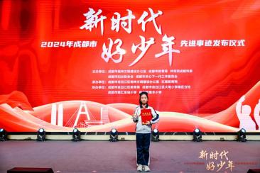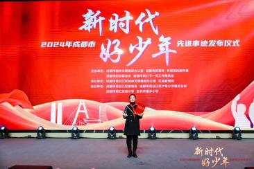 蓬勃少年志存高远,奋发向上“蓉耀”成长。12月16日,由成都市精神文明建设办公室、成都市教育局、共青团成都市委、成都市妇女联合会、成都市关心下一代工作委员会主办的2024年成都市“新时代好少年”发布仪式在青白江区大弯小学举行,经基层推荐、专家评审、社会公示推选出的50位2024年成都市新时代好少年亮相,他们品学兼优,朝气蓬勃,在弘扬优秀传统文化、传承红色基因、热爱科学、自强不息、乐于助人等方面表现突出,展现了新时代少年儿童风采。