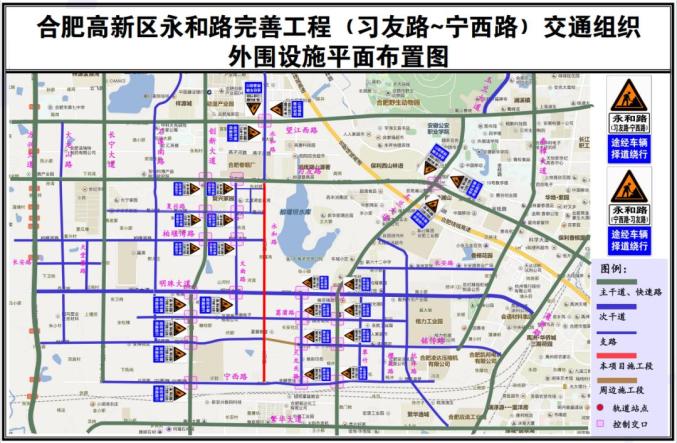 根据合肥高新区大建设计划安排,依据《中华人民共和国道路交通安全法》第三十九条、《中华人民共和国道路交通安全法实施条例》第三十五条之规定,经合肥市人民政府批准,合肥高新区永和路完善工程(习友路—宁西路)因施工需要,定于2024年12月24日22时对施工范围内道路进行阶段性封闭施工,封闭路段如下图: