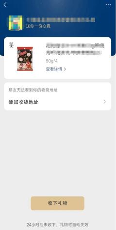 此外,赠送方每次只能给一位朋友赠送一件商品,赠送后不支持转赠给其他朋友。而且一旦送出礼物后,不论朋友是否收下礼物,赠送方在24小时内都无法主动取消赠送或取消订单。若朋友超过24小时未收下礼物,订单将自动取消并退款给赠送方。