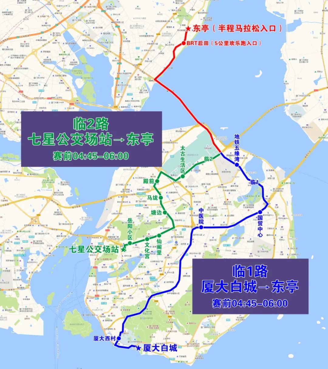 3.岛内2条线路:胡里山公交场站(临9路)、七星公交场站(临10路);