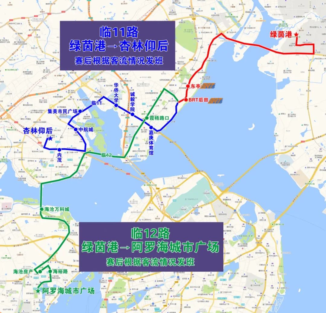 (2)停靠站点:绿茵港、东亭、BRT后田、霞梧路口、海沧万科城、海沧房产、海裕路、阿罗海城市广场。