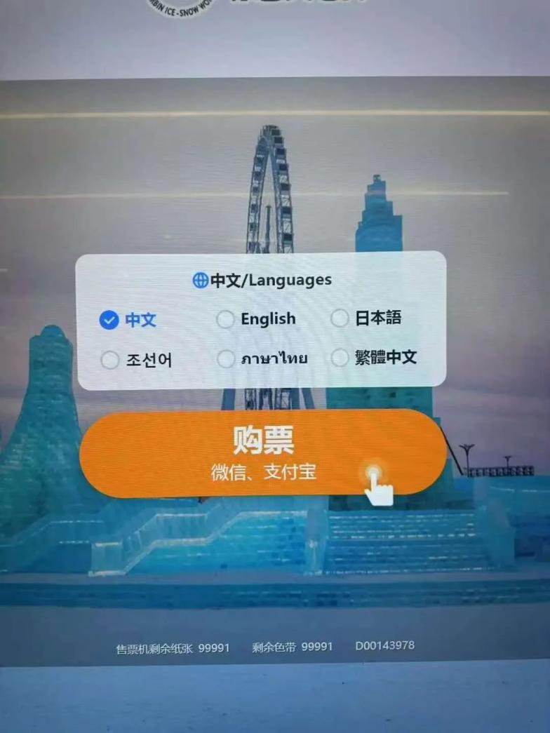 外籍游客也可以直接到哈尔滨冰雪大世界售检票大厅通过自助售票机进行购票,支持外汇支付,不用换人民币,方便快捷。