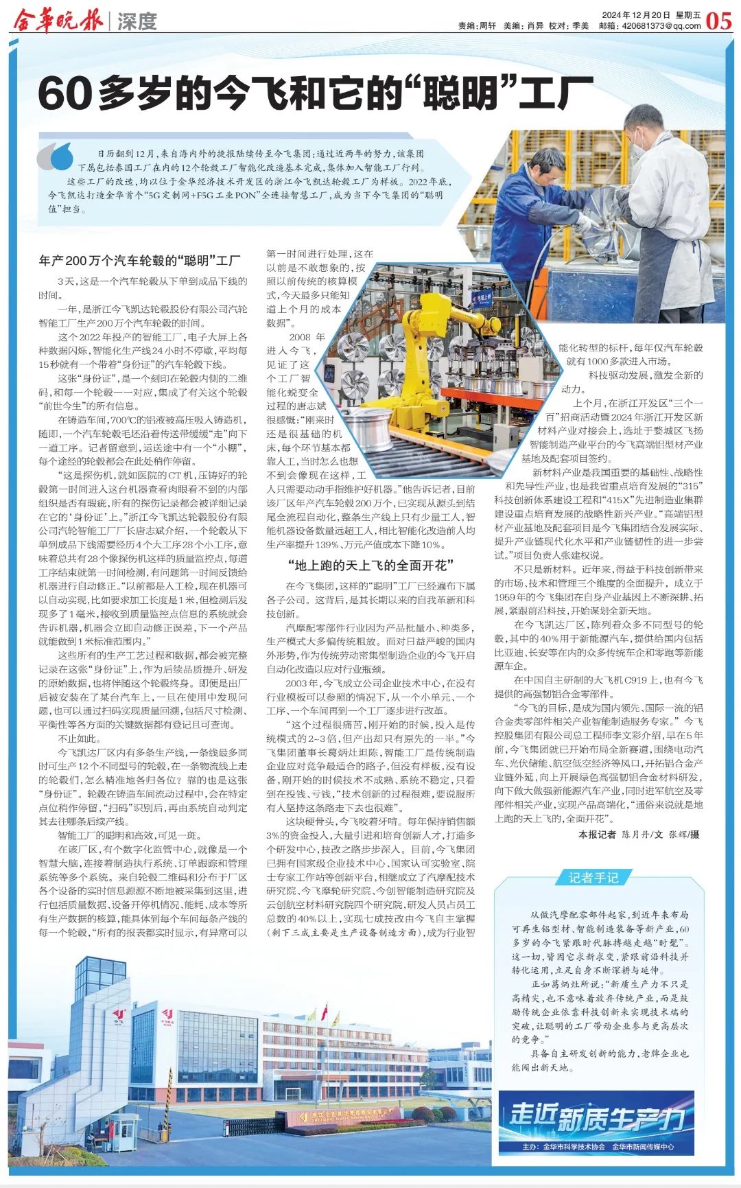 原标题:《【走近新质生产力⑳】60多岁的今飞和它的“聪明”工厂》