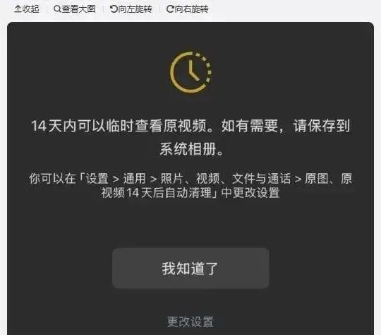 4.14天后自动清理原图原视频据@电脑报 消息,微信发布8.0.54正式版更新,多位用户发现微信正在小范围灰度测试一项清理原图、原视频的新功能。据了解,该功能为“原图、原视频14天自动清理”,在微信设置—通用—照片、视频、文件与通话—原视频14天后自动清理,可以进行开启。开启该功能后,14天内可临时查看原图、原视频,14天后将自动清理原图及原视频,但仍可查看普通画质的图片、视频。
