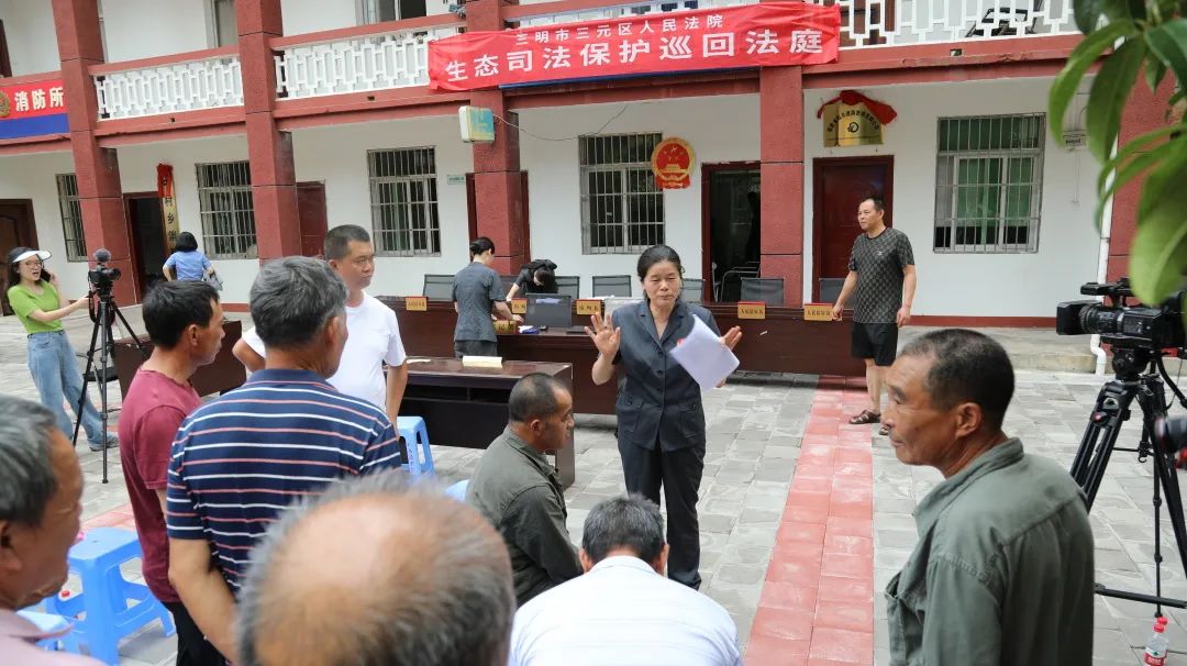 三明中院、三元法院干警到岩前镇开展普法宣传。同时,三元法院组织干警“一对一”入驻遗址周边村居社区,通过“摆点+上门”“圩日+夜间”“走村居入万户送平安”等活动形式,开展生态环保法治宣传,面对面服务群众3000余人次。