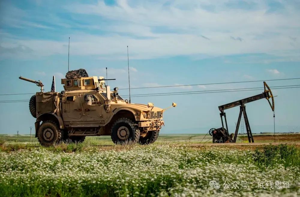 美国在叙利亚仍驻有约900名士兵,图为叙利亚东北部哈塞克省停靠在一处油井旁的美军车辆