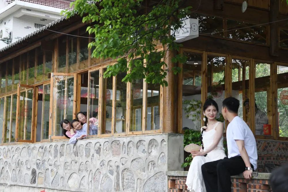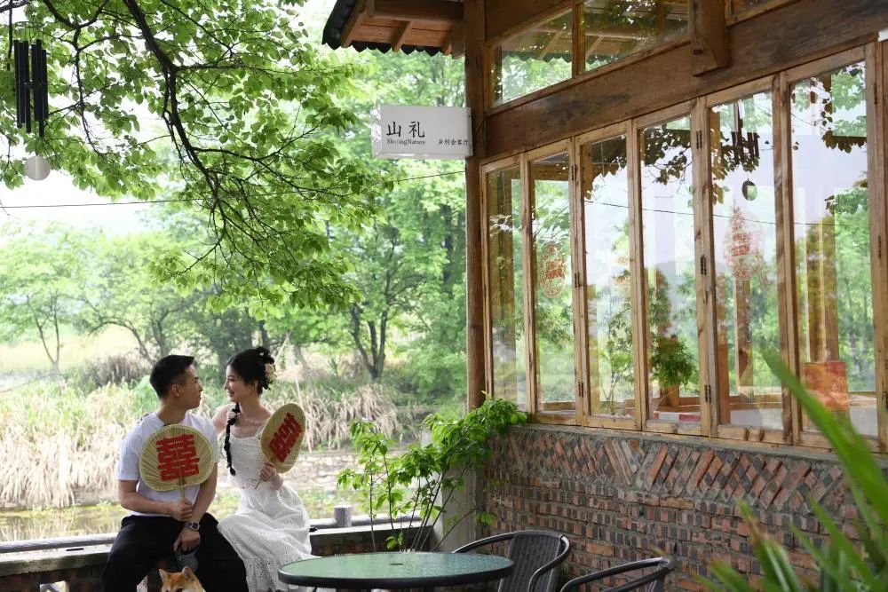 这是4月20日在大院村山礼乡村会客厅拍摄的一对新人。