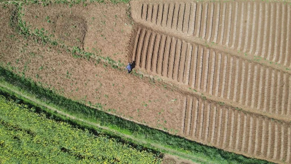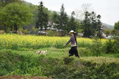 4月4日,胡婷婷在种姜结束后走在田埂上。