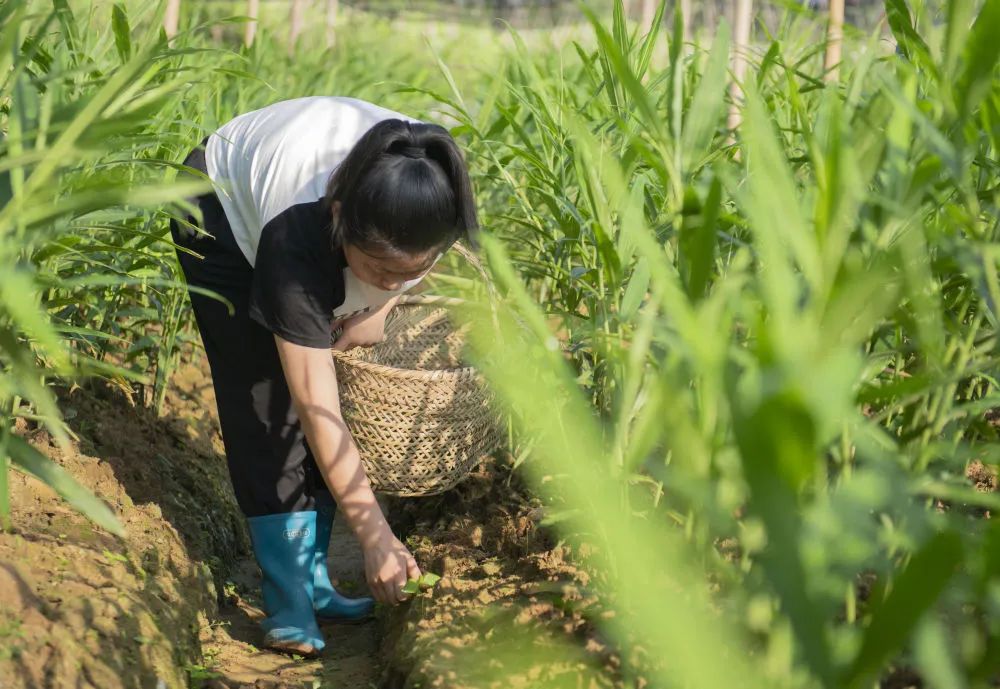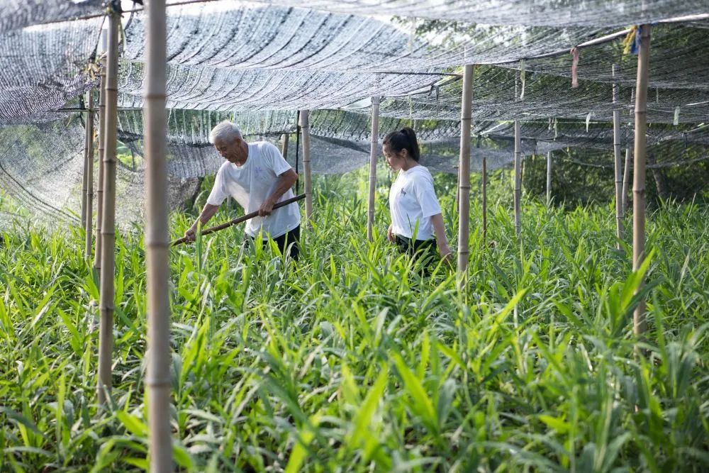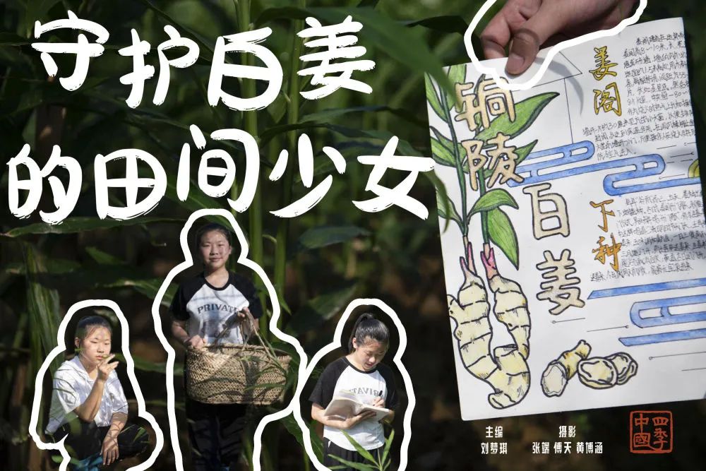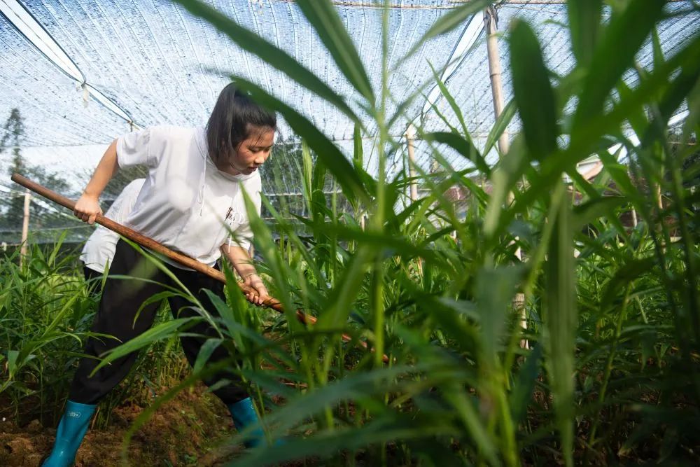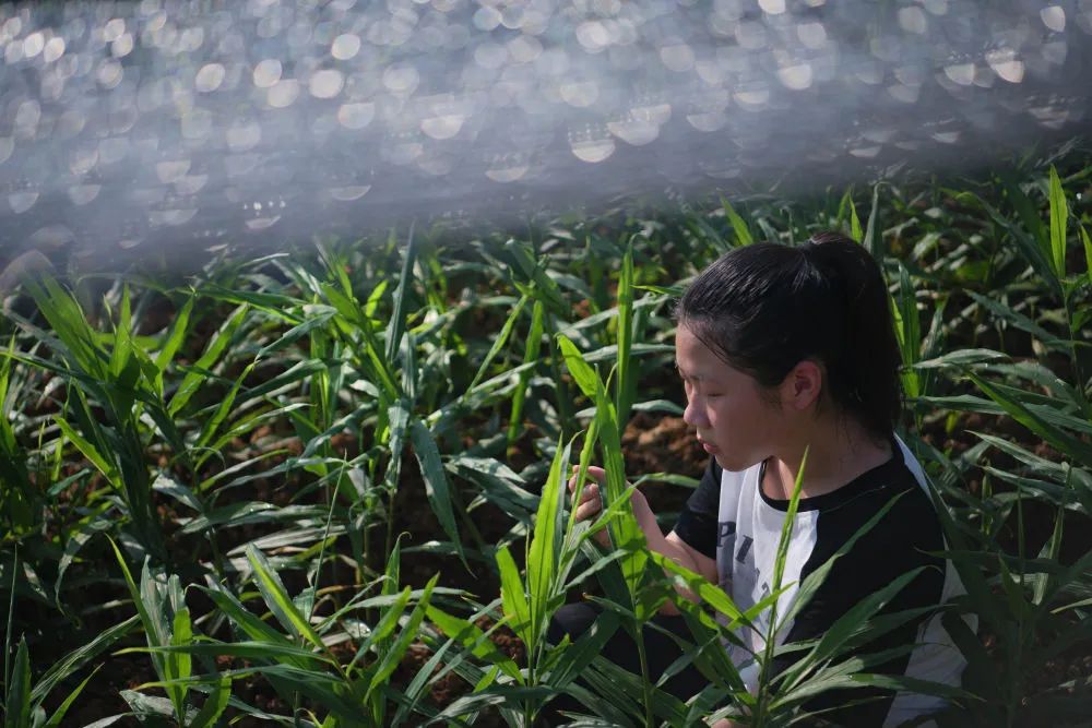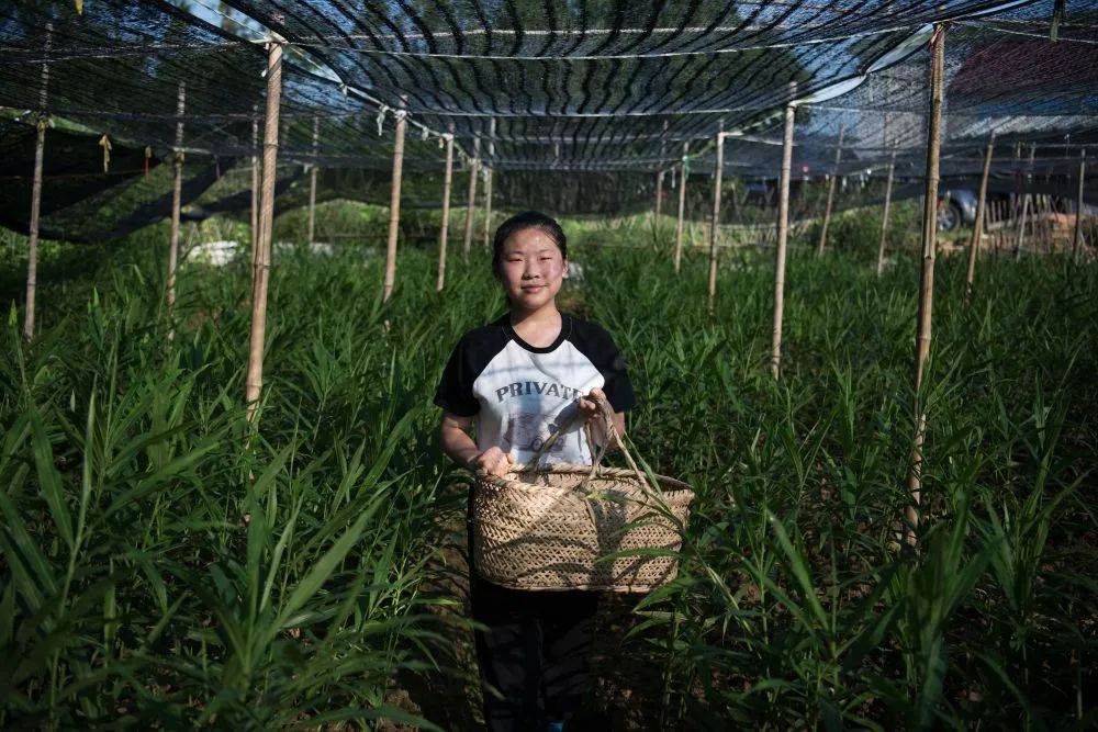 朱晴雨六七岁时就跟着妈妈许红丽在姜田里拔杂草。看着杂草逐渐填满篮子,年幼的她体会到了劳动带来的快乐。她喜欢待在姜田里,看看叶片的样子,瞧瞧上面的虫眼,然后把自己的观察写在周记里。“我和姜苗就像朋友一样,互相陪伴着长大。”朱晴雨说。