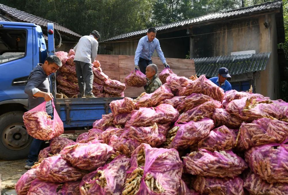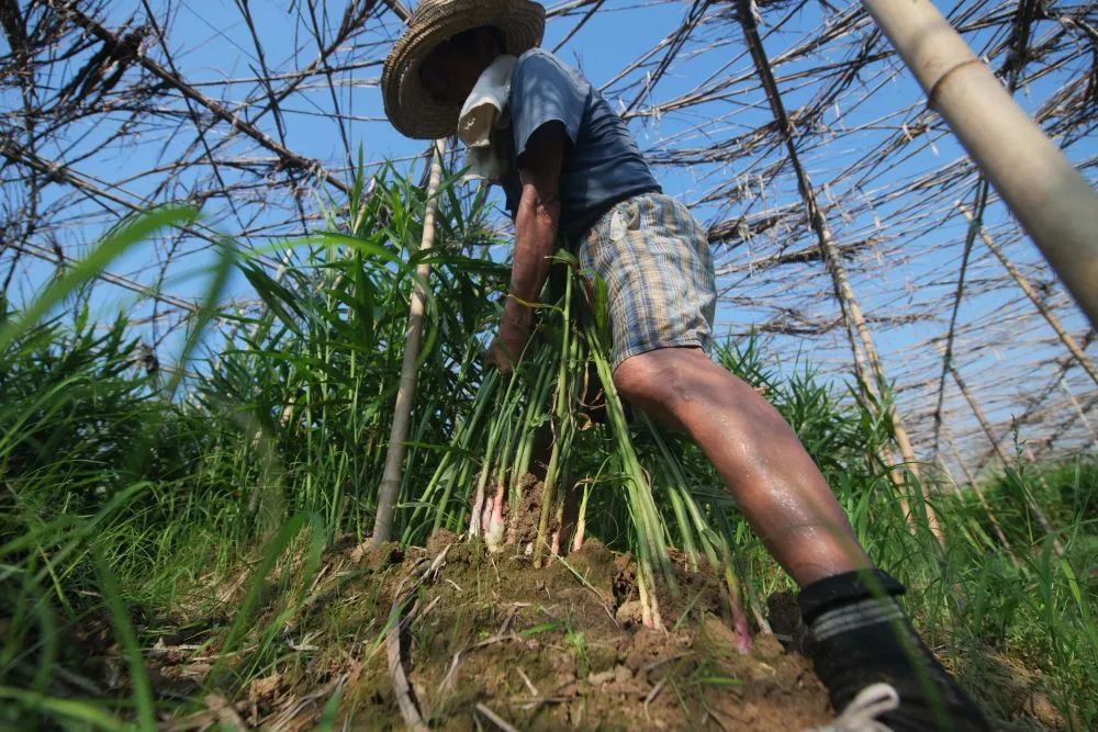 姜农忙着拔姜、刮姜、晒姜、腌制生姜