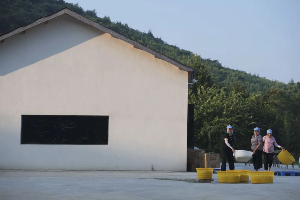 9月1日,在安徽省铜陵市郊区大通镇大院村山礼白姜工坊门前,工作人员准备晾晒白姜。新华社记者 张端 摄