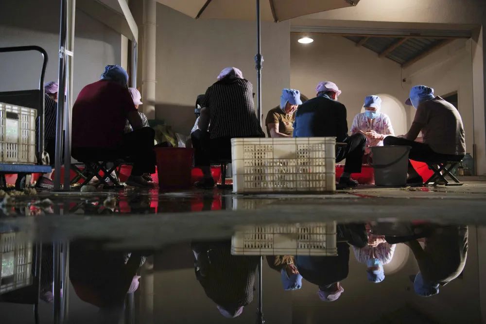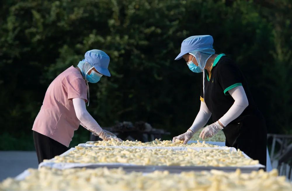白姜加工企业的工人有条不紊地忙碌着