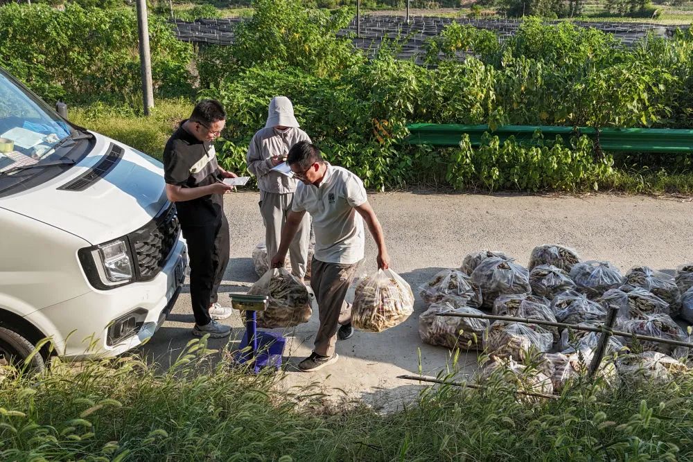 9月6日,在安徽省铜陵市义安区天门镇,一家超市的工作人员在收购白姜。新华社发(储著传 摄)