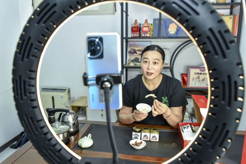 9月6日,在安徽省铜陵市一家电商企业,工作人员在线上推介销售铜陵白姜。新华社发(储著传 摄)