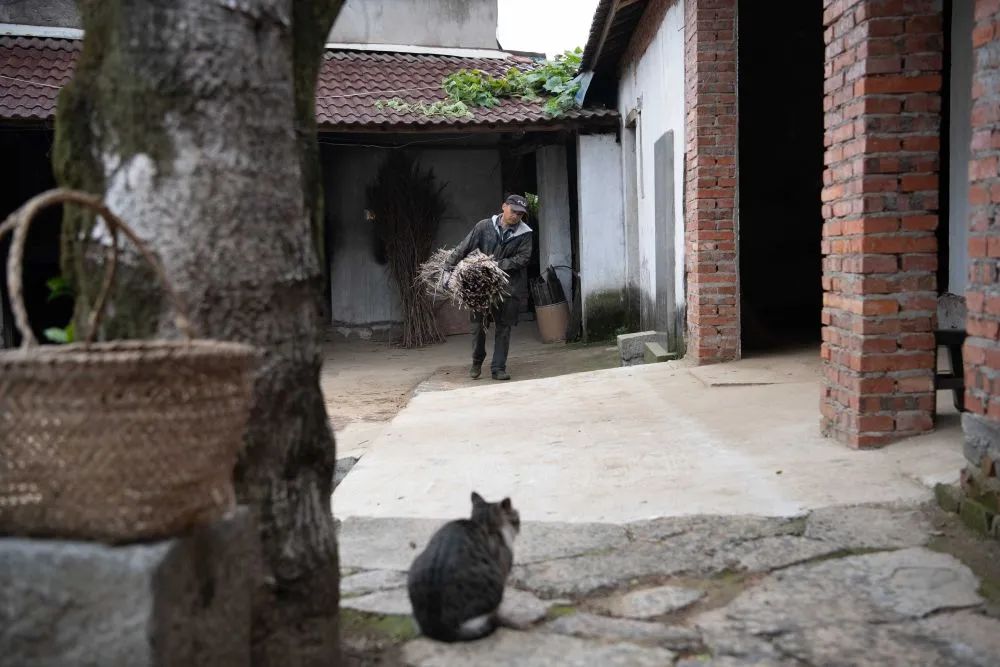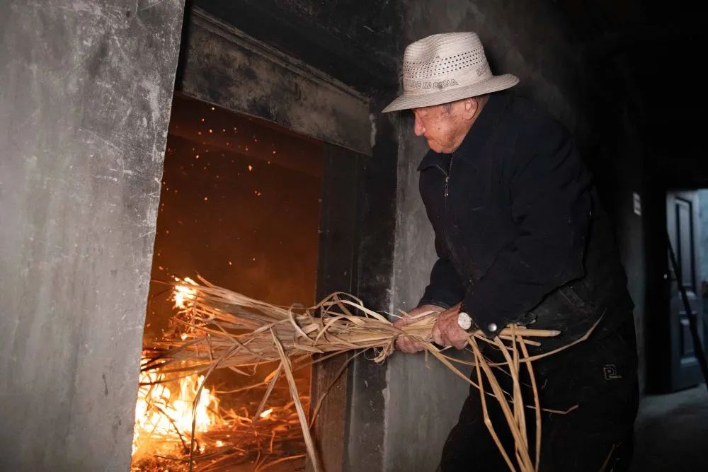 冬季早晨,空气清冷,尚未隐去的月亮悬于天际,安徽省铜陵市义安区天门镇五峰村的“百年姜阁”中,暖意融融。盛义武蹲坐在姜阁入口处,时刻留意着火候。柴草在火堆里雀跃,不时发出噼啪声。