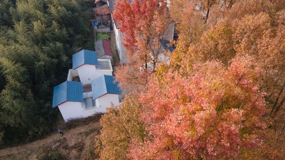 这是11月7日拍摄的位于安徽省铜陵市郊区大通镇大院村的姜阁外景(无人机照片,画面下方为姜阁)