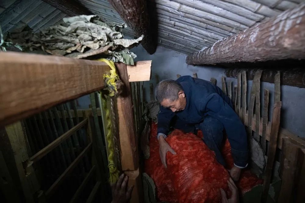 3月29日,村民从“姜阁”中取出姜种。姜种在土墙瓦顶的“姜阁”里,按照古老的技艺,经过漫长冬季的熏烤,姜芽萌发,等待春天的播种。