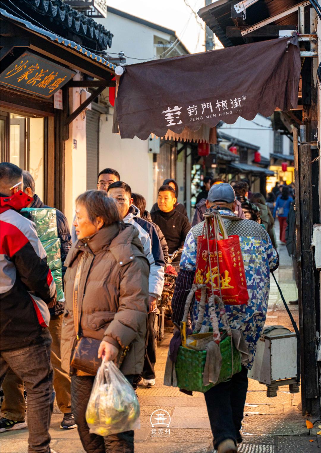 经过历时三个多月的改造,葑门横街以全新的面貌焕新开放。如今,这条老街干净、整洁、有序,烟火气更足,人气更旺。许多游客和市民纷纷前来打卡留念,不少店铺前都排起了长队。