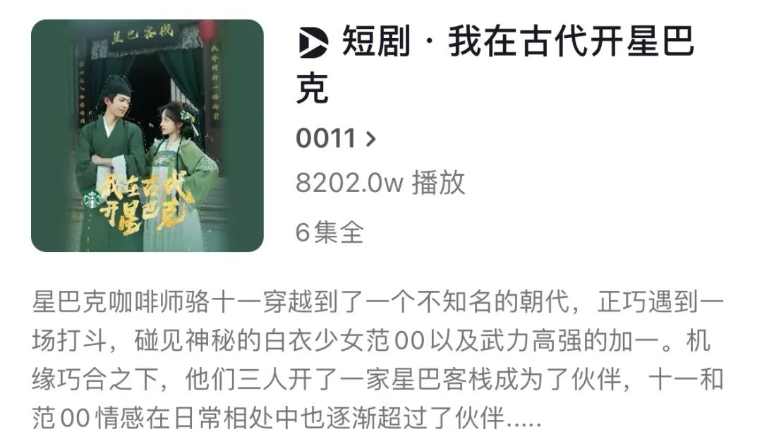 另外,《我在古代开星巴克》还利用物理链路的本地生活的逻辑,设置看后搜进入直播间或者根据用户定位和距离进入本地店购买页面,带来直接转化。在苏成看来,品牌短剧未来将是真正解决品牌痛点的强大工具,他也认为明年将会是品牌定制短剧的元年。
