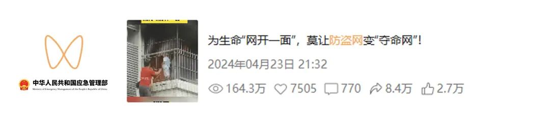 提示:设置不当的防盗窗,在火灾发生时,会严重威胁生命安全。