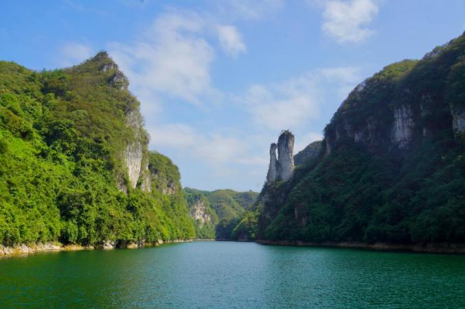 高过河景区位于镇远县羊场镇,距古城区38公里,漂流全长5公里,漂流用时3小时,险滩11处,是夏季避暑、漂流休闲的绝佳之地。高过河景区属于典型的喀斯特地貌峡谷风光类型的旅游胜地,素有“森林王国”和“天然植物园”的美称。高过河风景区主要景点有:猴欢谷、庆云山、千丘田、三跳滩、太平寺遗址、双龙泉、黔东第一松、无底潭、黑巷、珍珠崖、金雀湾、洗礼滩、龙门、土家少女、卧牛滩、古耳洞瀑布。