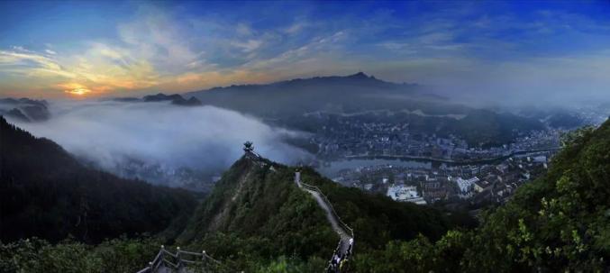 石屏山,位于镇远县㵲阳镇㵲阳河东侧,重岩叠嶂,雄伟险峻。东西绵延2.2公里,海拔668.1米,与㵲阳河面相对高差204米。石屏山上主要有两个景点,一是四官殿、二是府城垣。