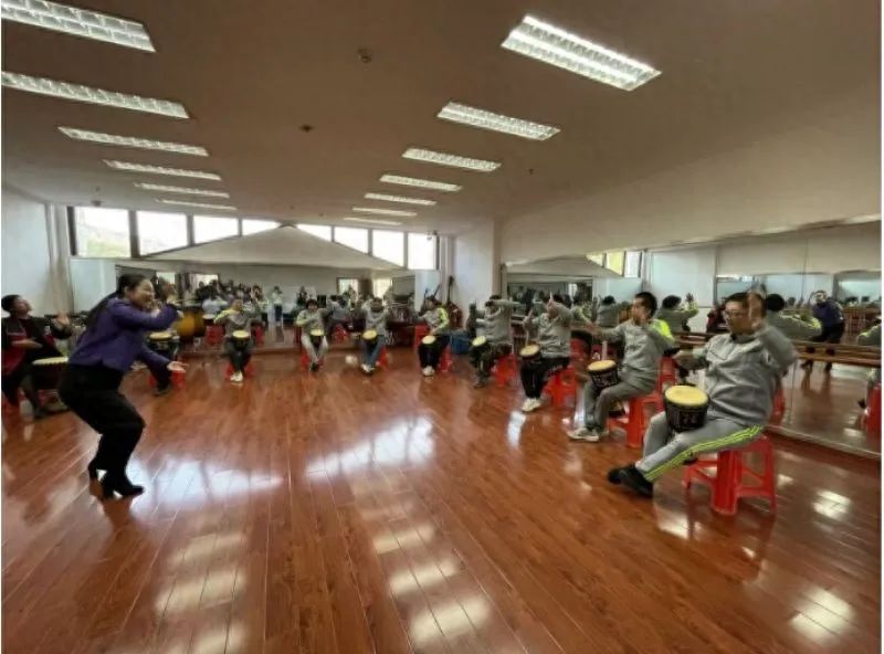 钱秋娣(左1)带着托养中心的腰鼓队表演节目,场面气势恢宏。残疾人托养服务是残疾人社会保障体系和服务体系建设的重要组成部分,是提升残疾人基本公共服务水平、改善残疾人生活质量的“民生工程”,具有“托养一人 解放全家”的重要意义,其中,针对3级、4级且处于就业年龄段的残疾人而言,他们除了拥有托养服务需求外,同样需要一份可以体现自身价值的工作。