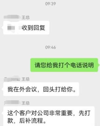 诈骗分子会以“合同付款”、“项目结算”等理由诱骗财务人员立即向其指定的诈骗账户汇款。这个过程中,诈骗分子会营造事态紧急、不容置疑的紧张氛围,往往态度强硬,不断催促,令财务人员没有冷静思考和核实的时间,稀里糊涂地按照其指令将公司钱款转账至涉诈账户。