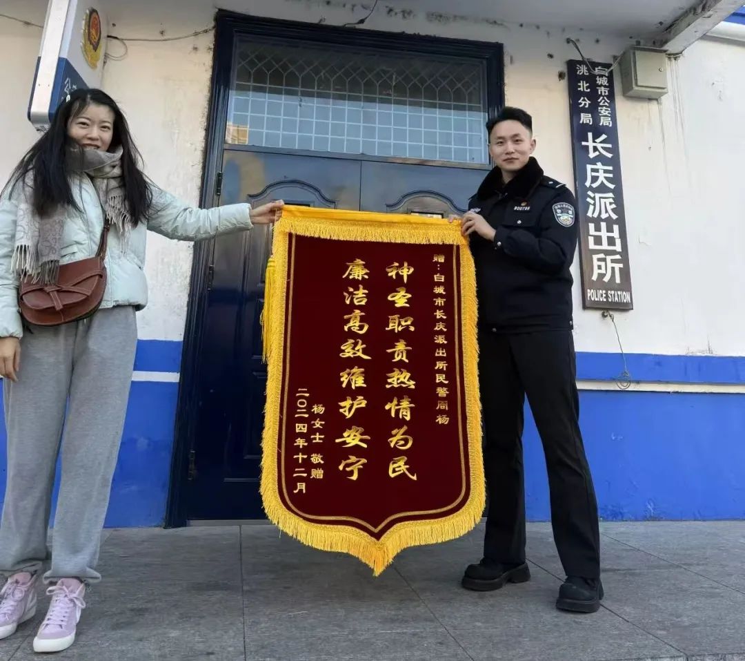 市民杨女士手捧绣有“神圣职责热情为民·廉洁高效维护安宁”字样的锦旗走进派出所,专程向民警表达谢意。近日,杨女士驾车前往幼儿园接孩子途中,与一辆私家车发生轻微刮蹭,这一突发状况令杨女士分身乏术,无法及时赶到幼儿园。此时,孩子姥姥正带着孩子在幼儿园门口焦急等候,得知女儿正在处理交通事故后,准备带孩子打车回家。然而,正值交通高峰时段,打车很难,且天气寒冷,孩子身上仅穿着单薄衣物。