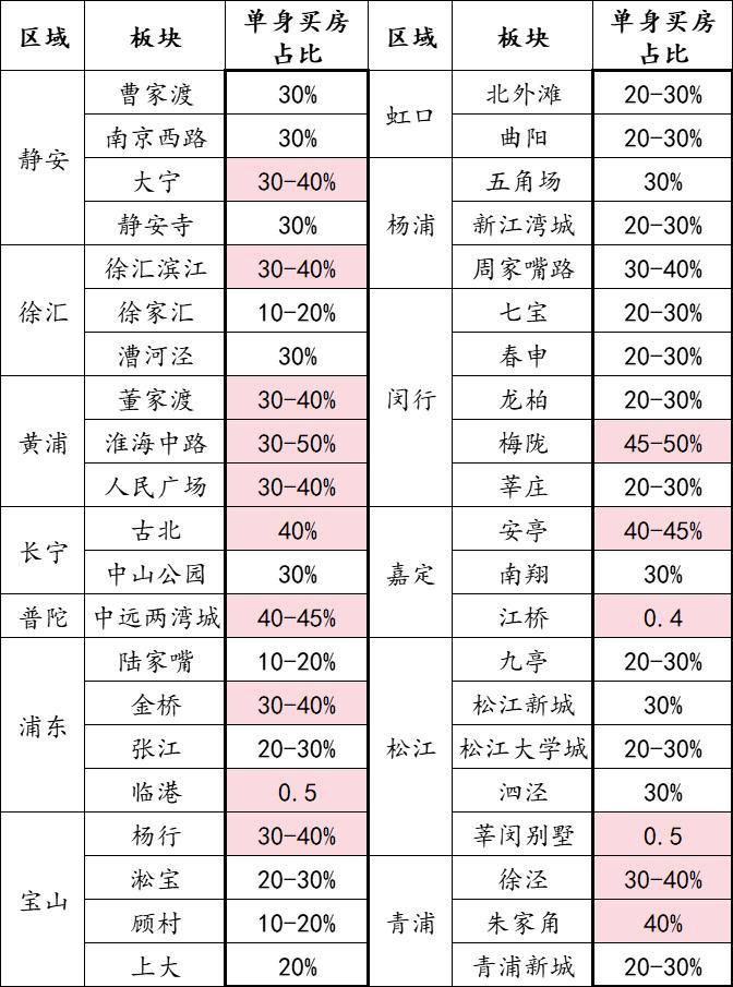 你会发现这种超30%的单身购房占比板块在所有板块中占近六成