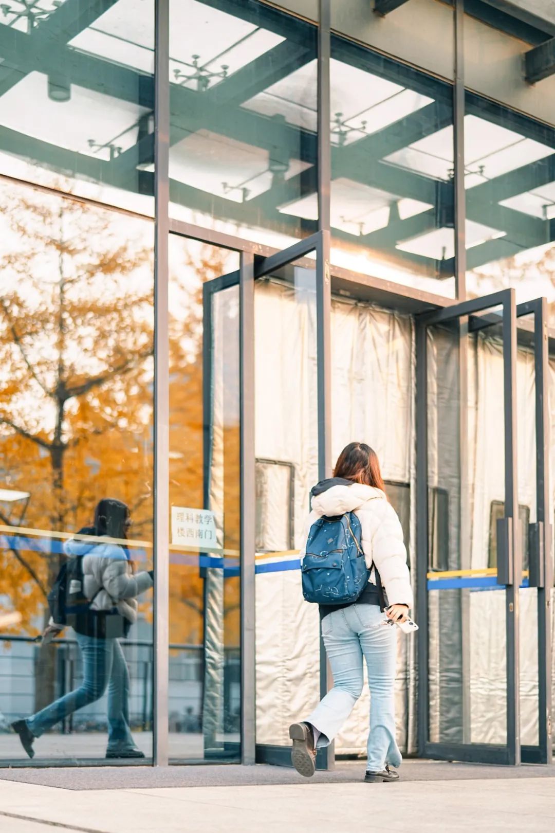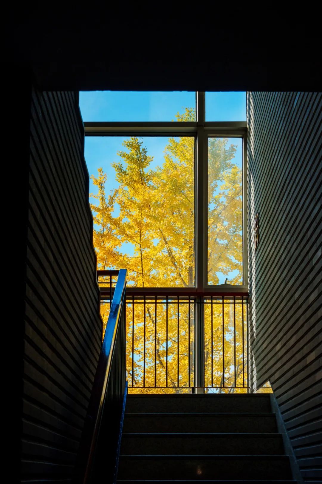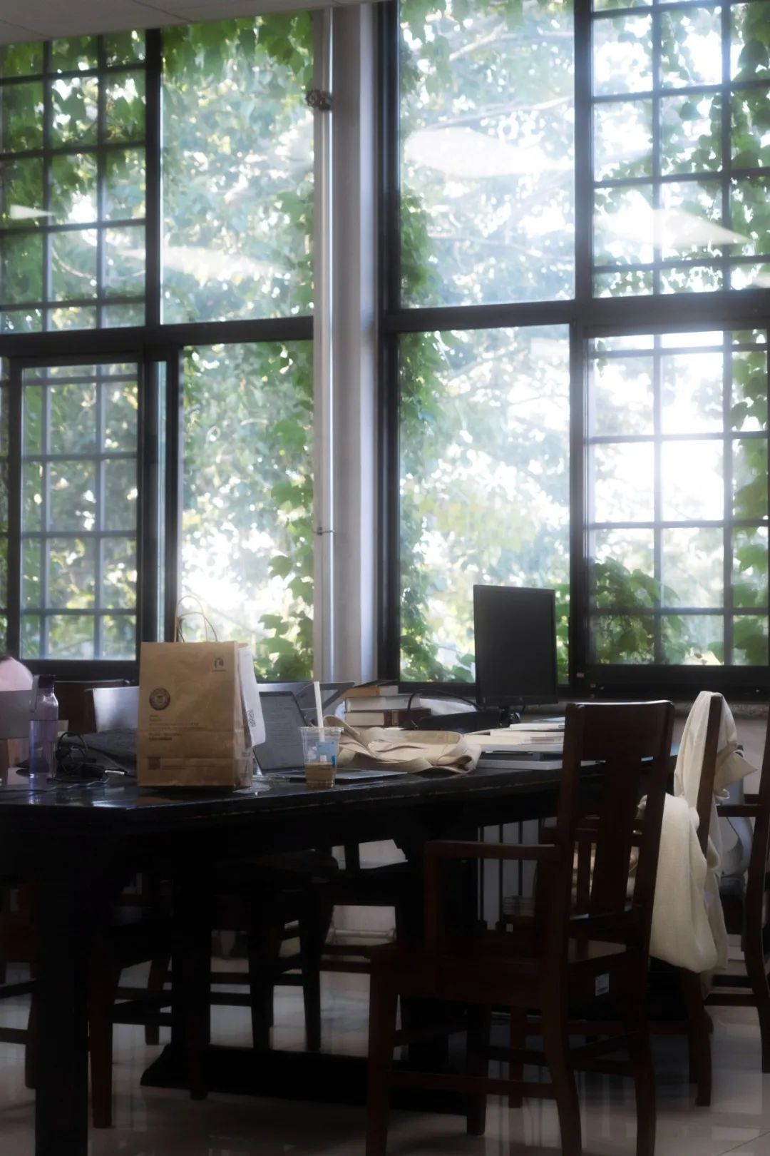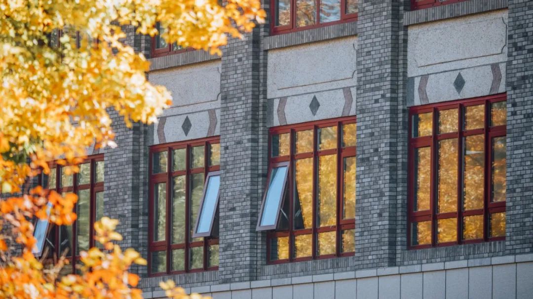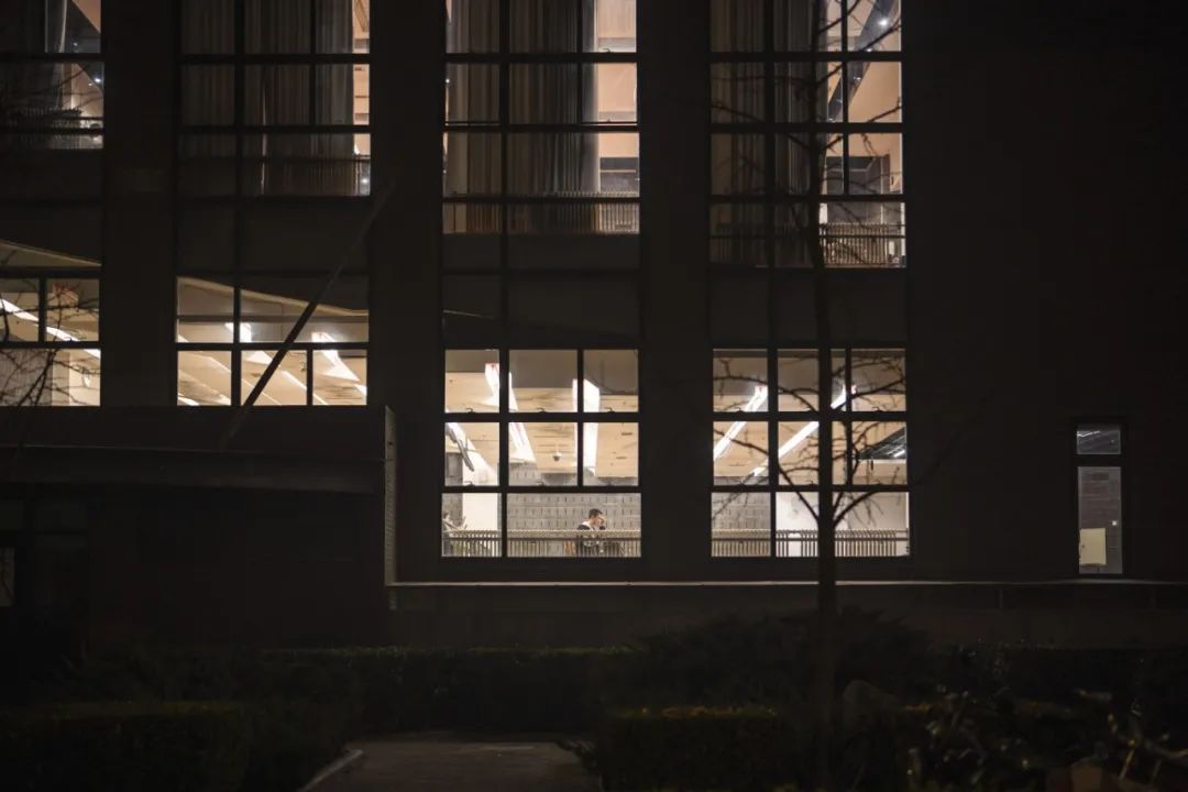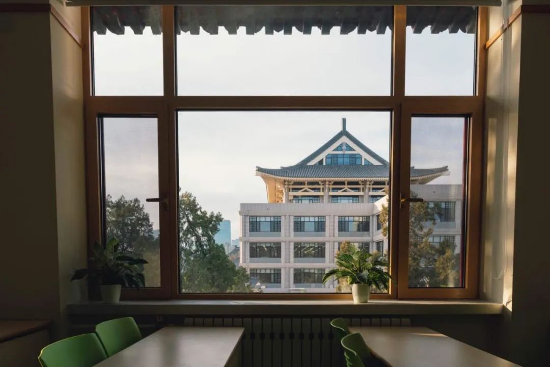 未名湖畔,教学楼旁教室窗明几净,光影静谧澄明