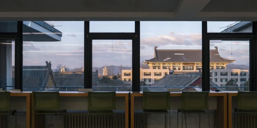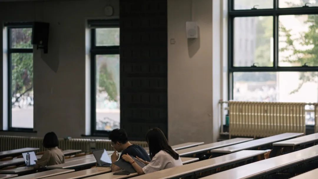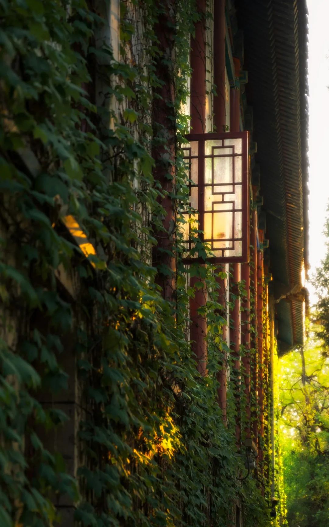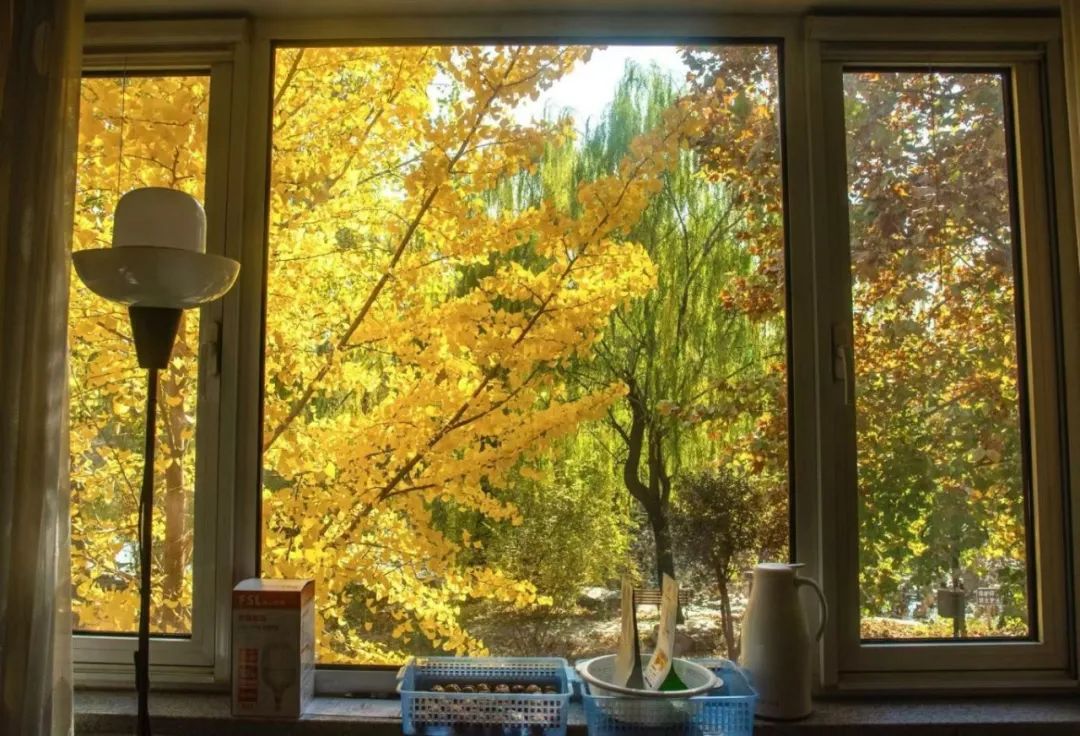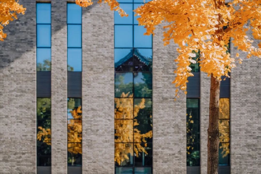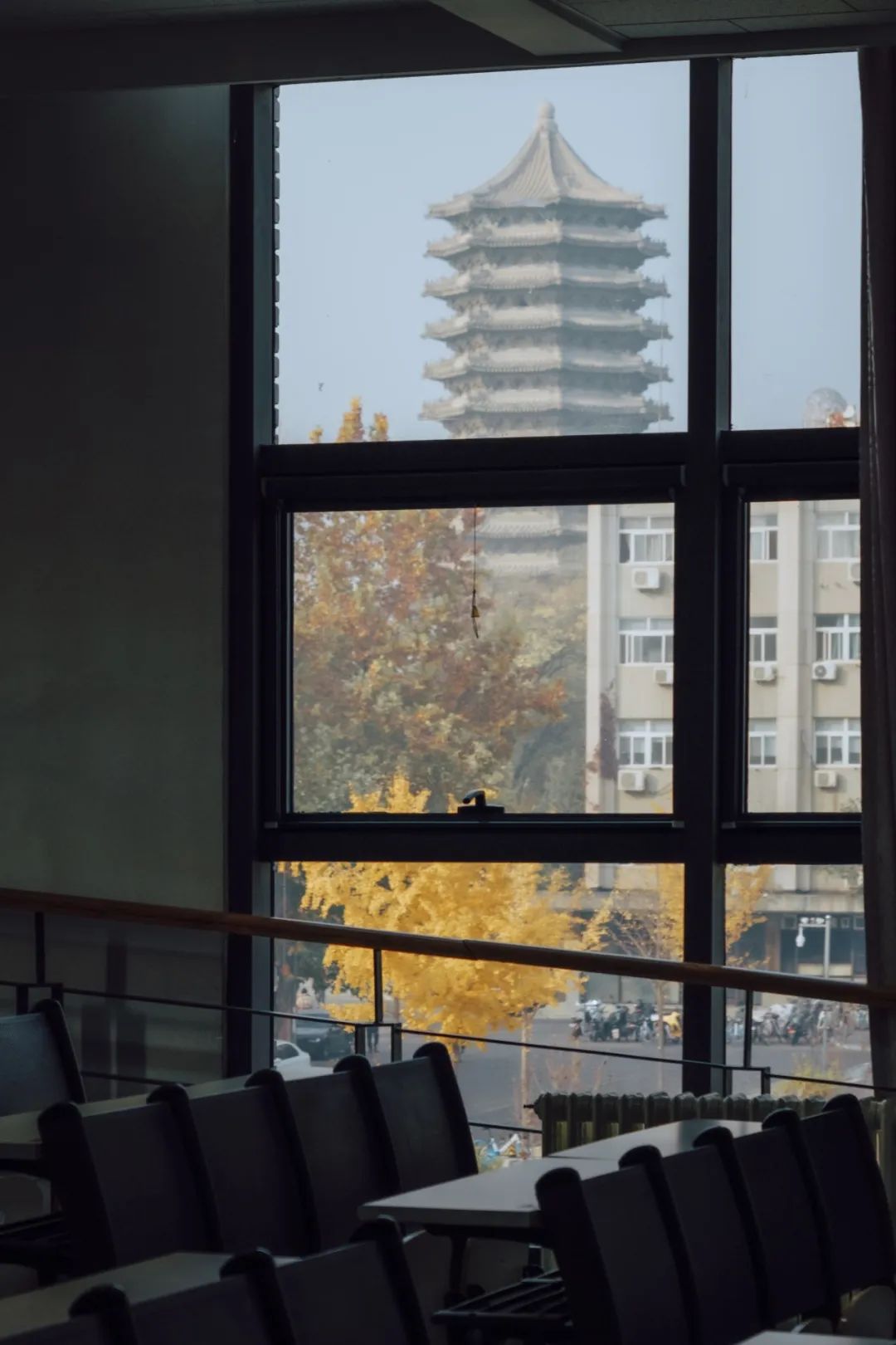 未名湖畔,教学楼旁教室窗明几净,光影静谧澄明