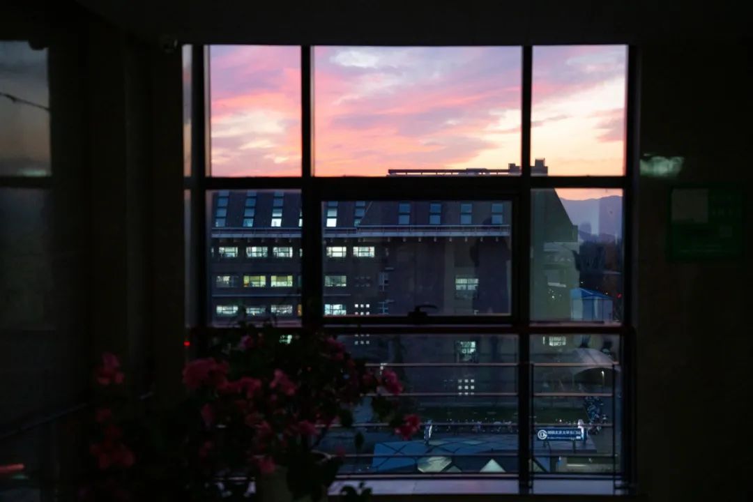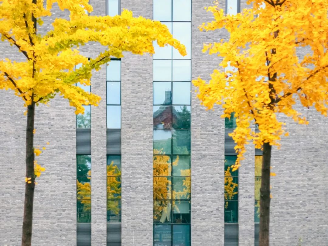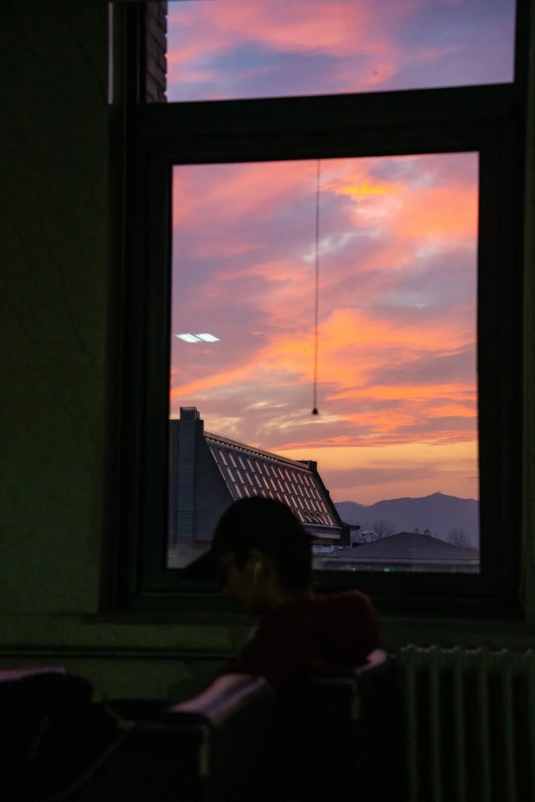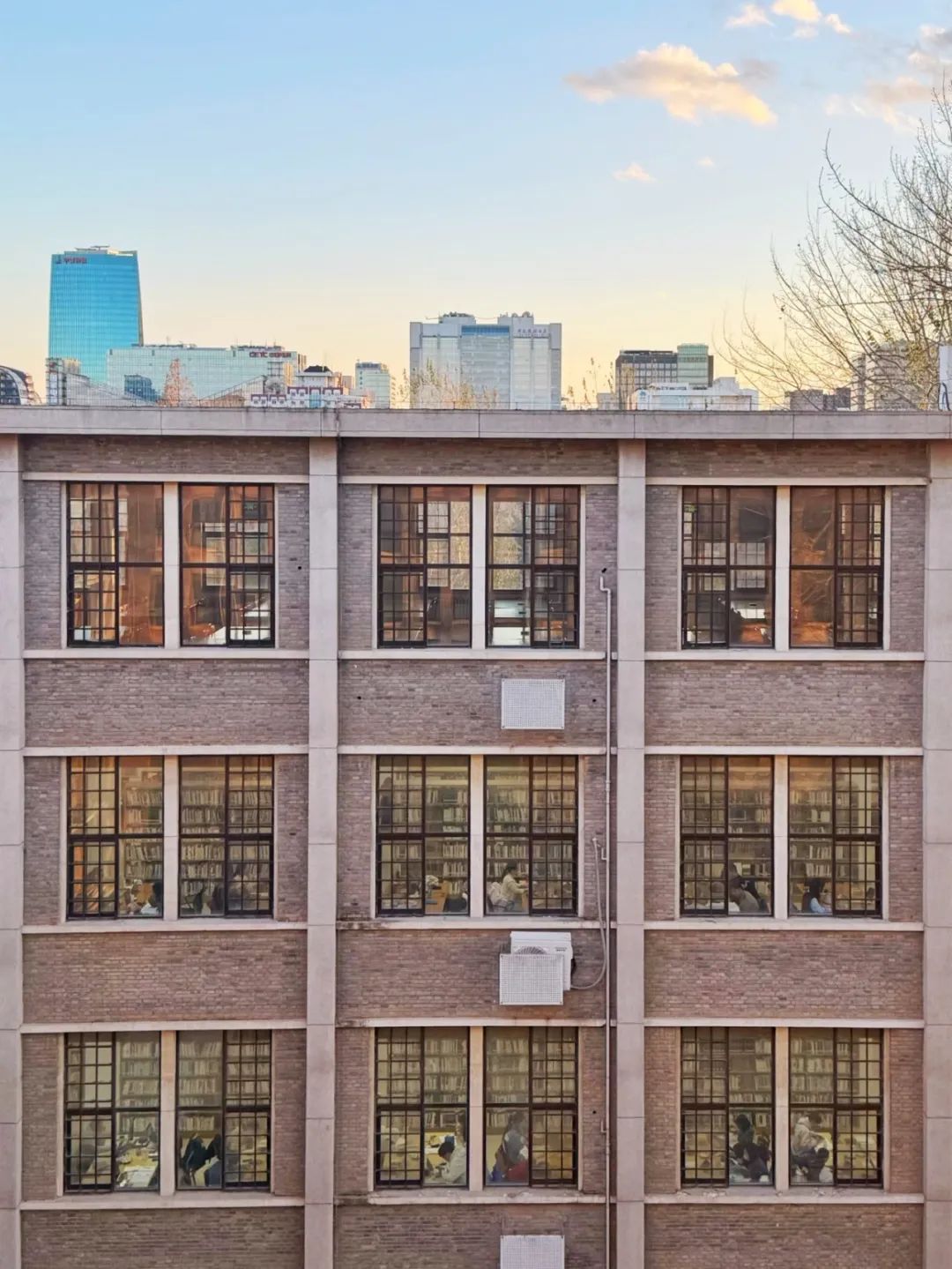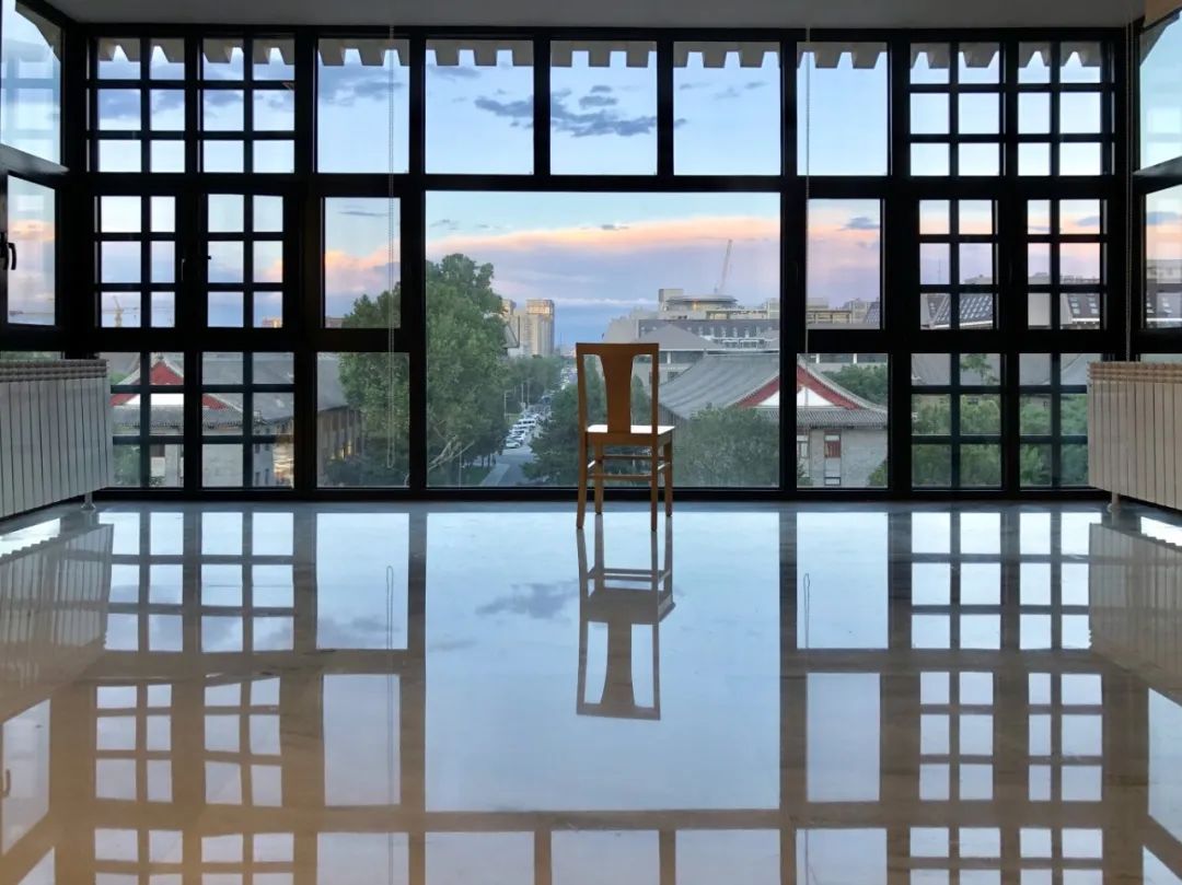 未名湖畔,教学楼旁教室窗明几净,光影静谧澄明
