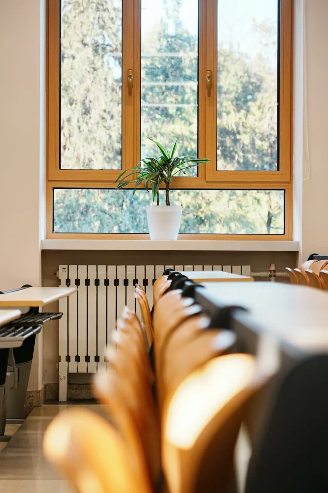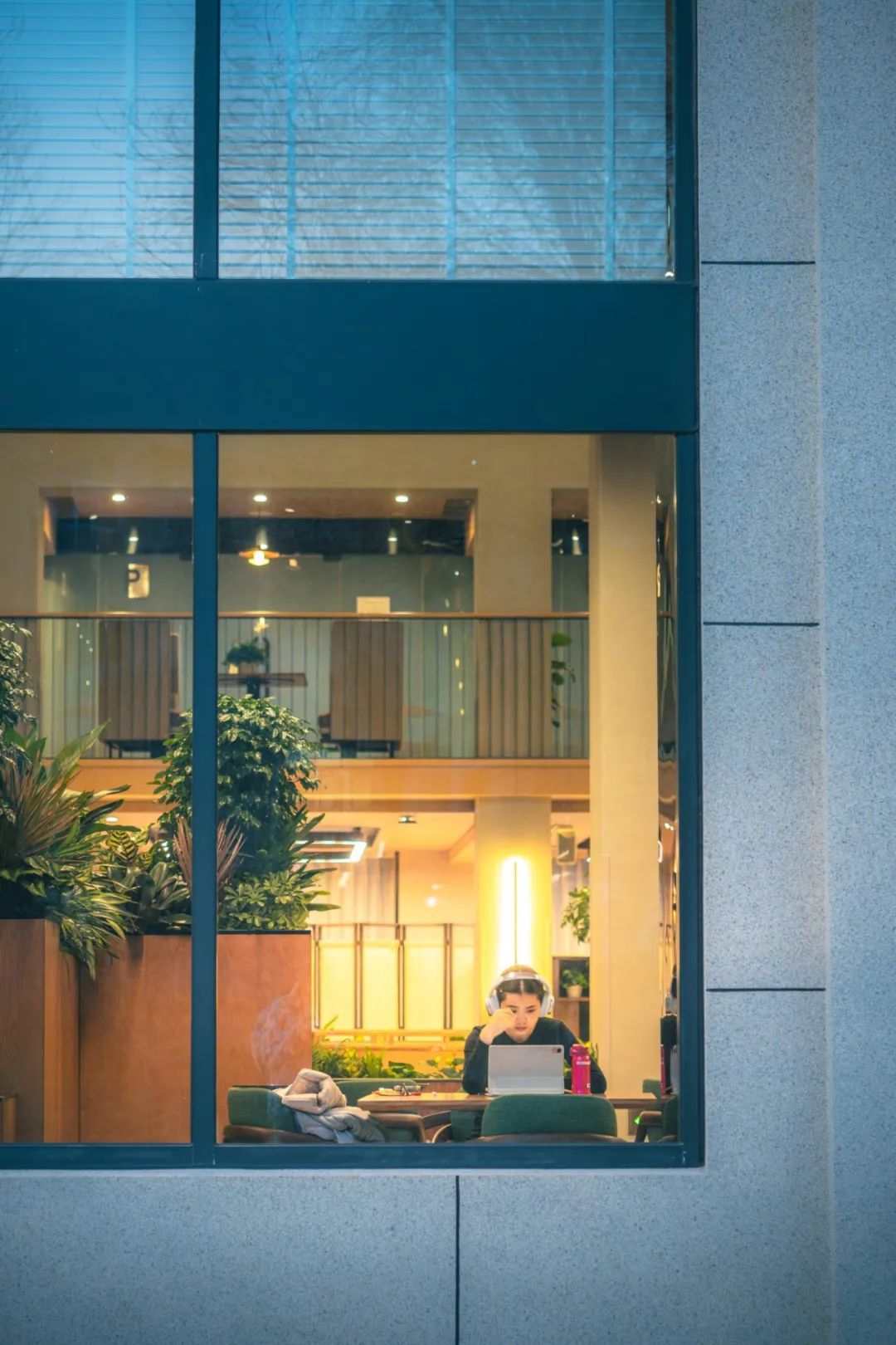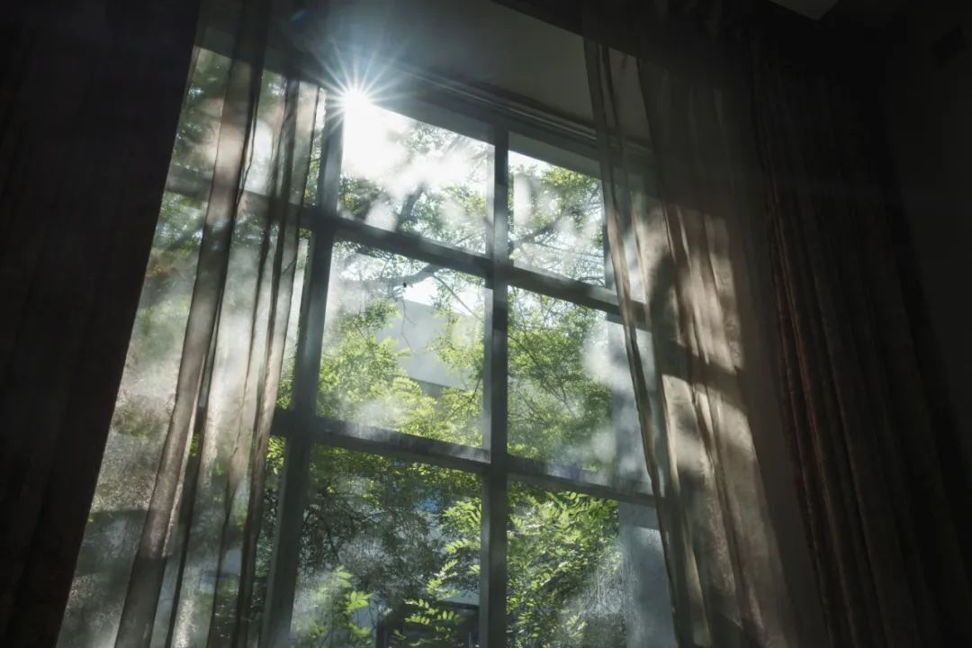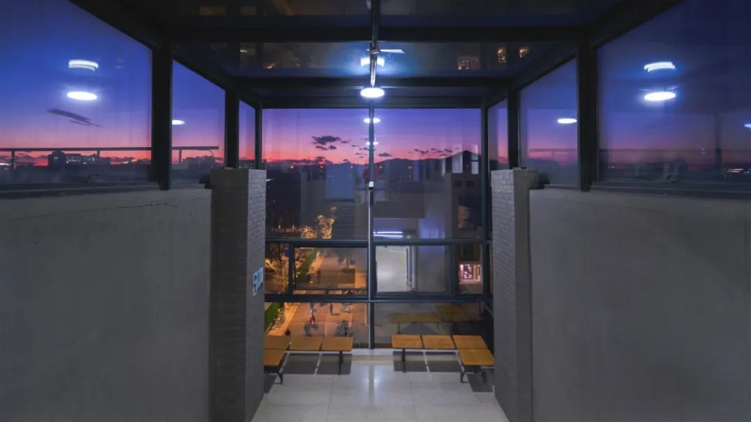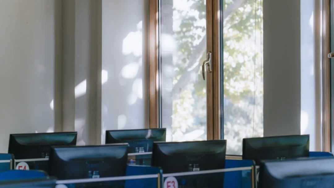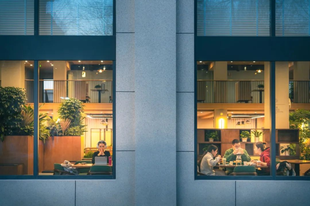 未名湖畔,教学楼旁教室窗明几净,光影静谧澄明