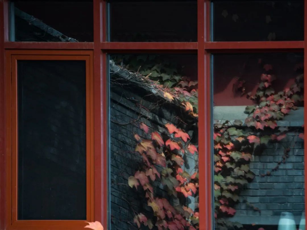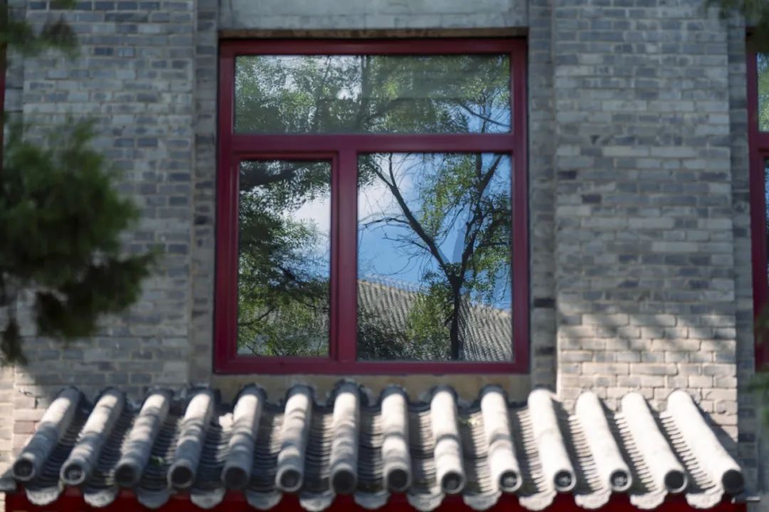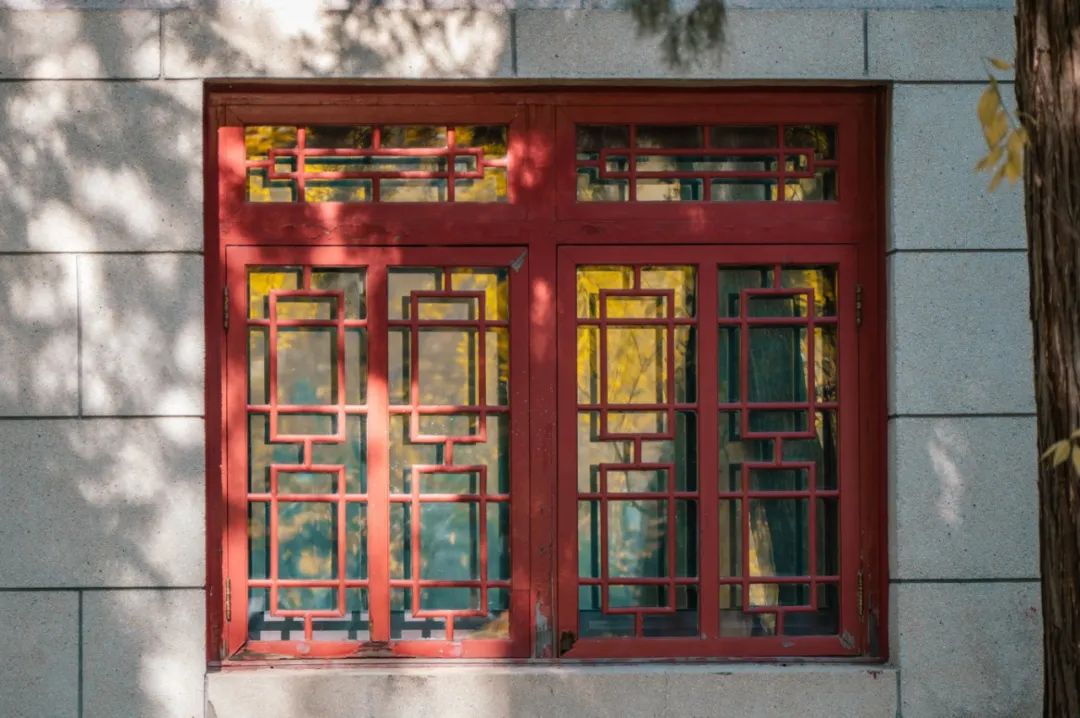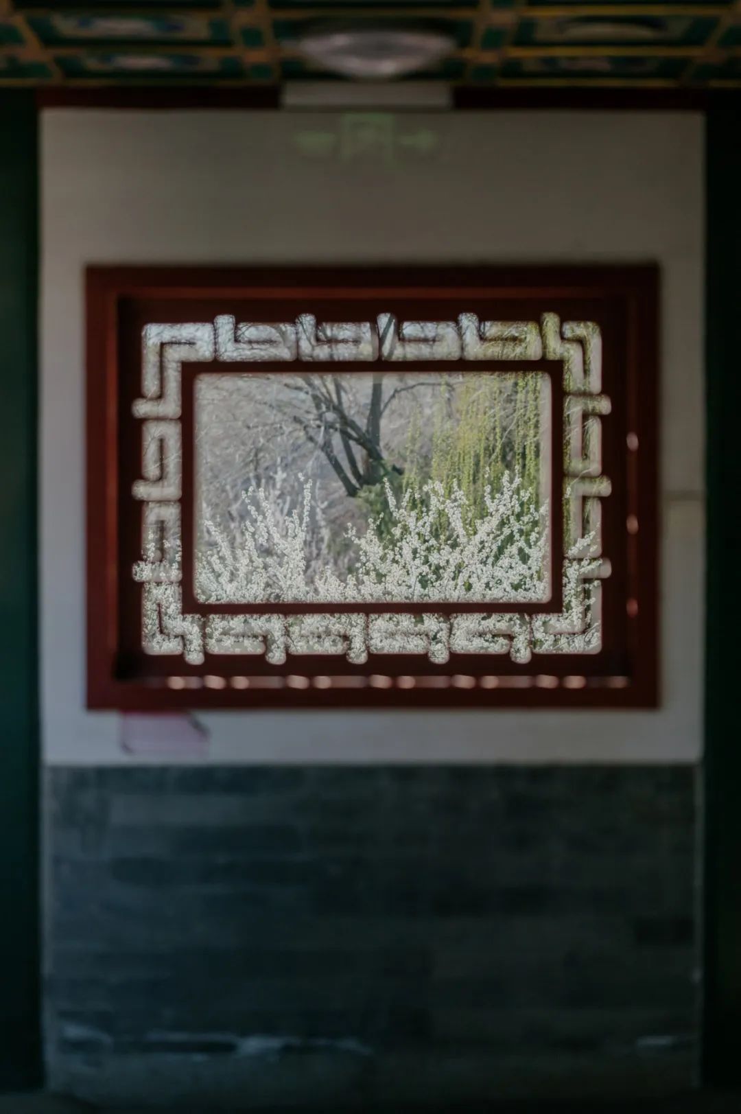 透过窗格,穿过深红门框走入层层景深,曲径回廊