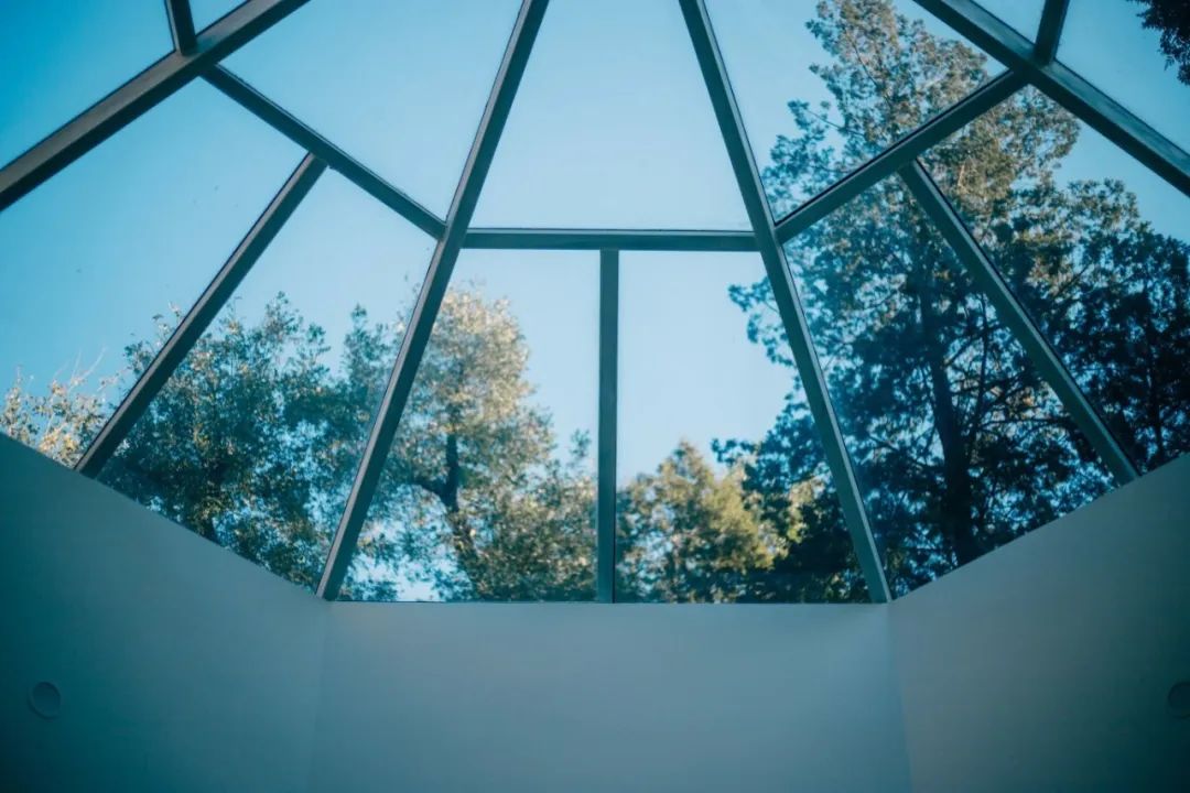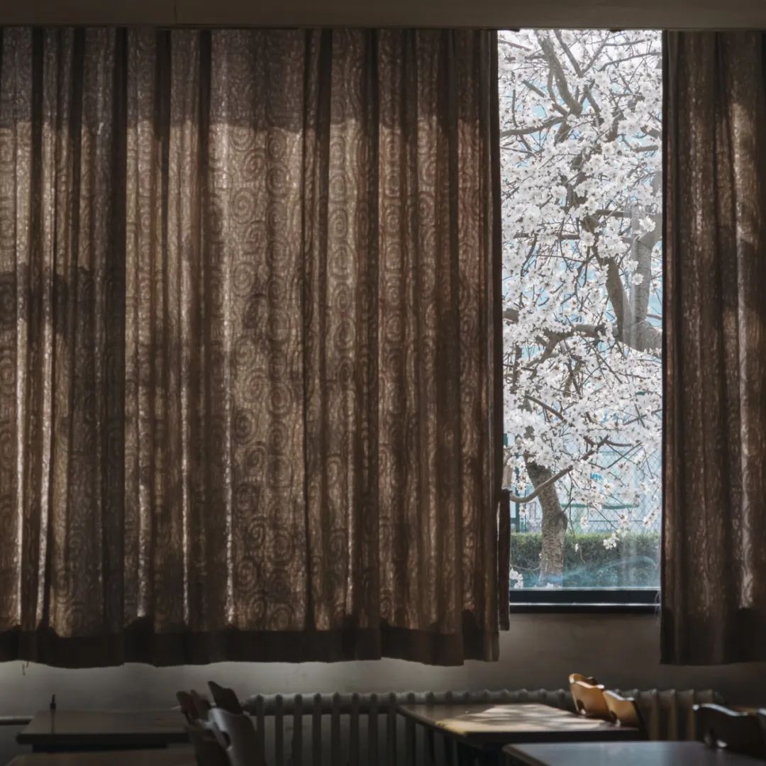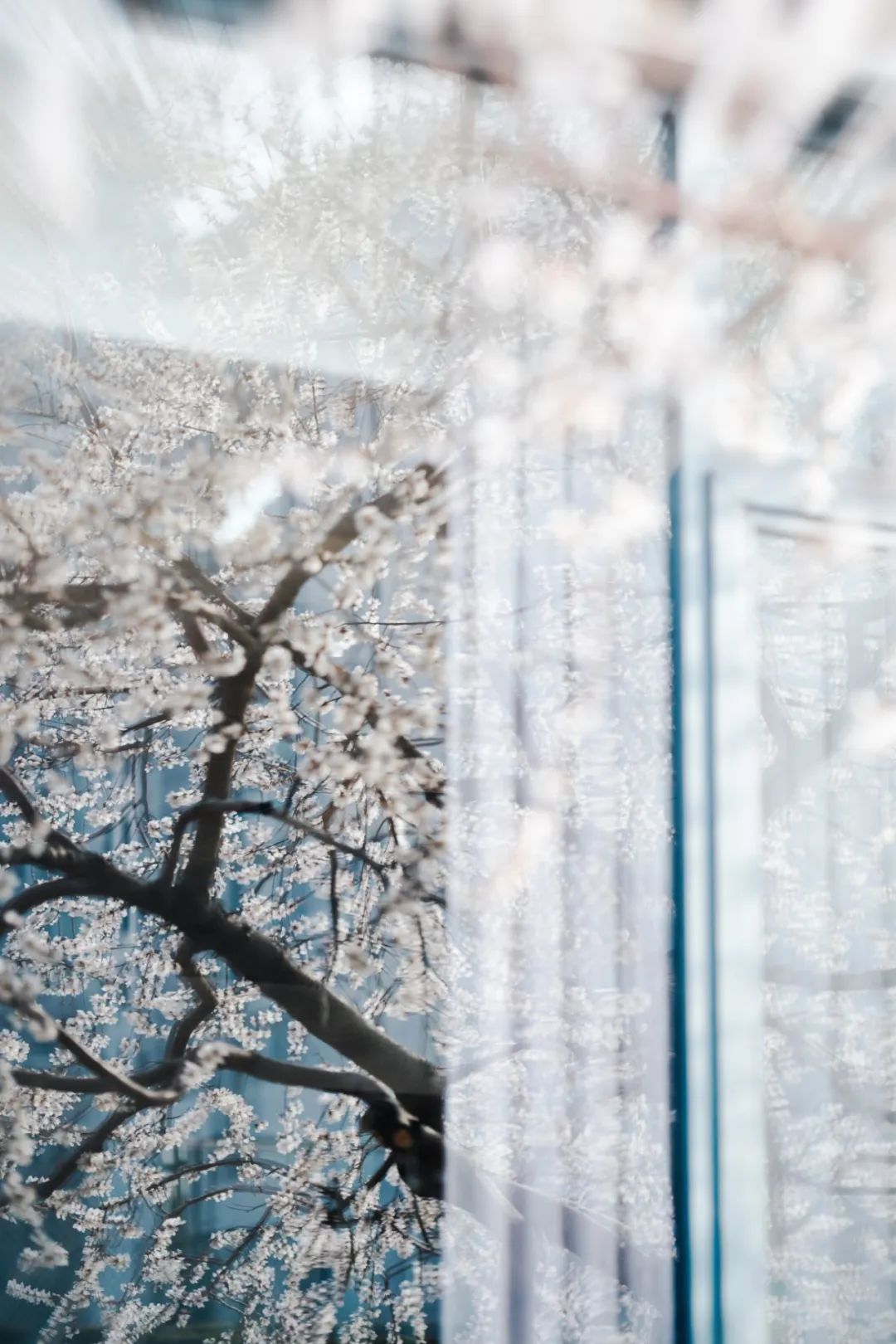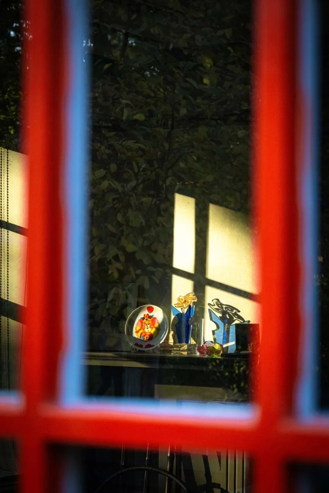透过窗格,穿过深红门框走入层层景深,曲径回廊