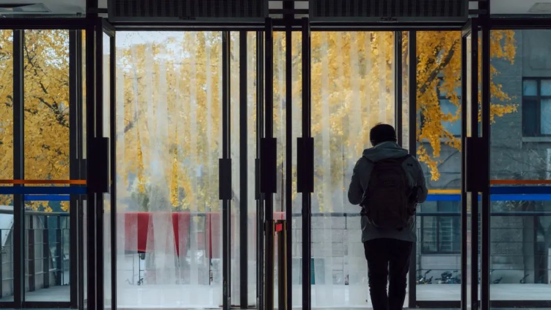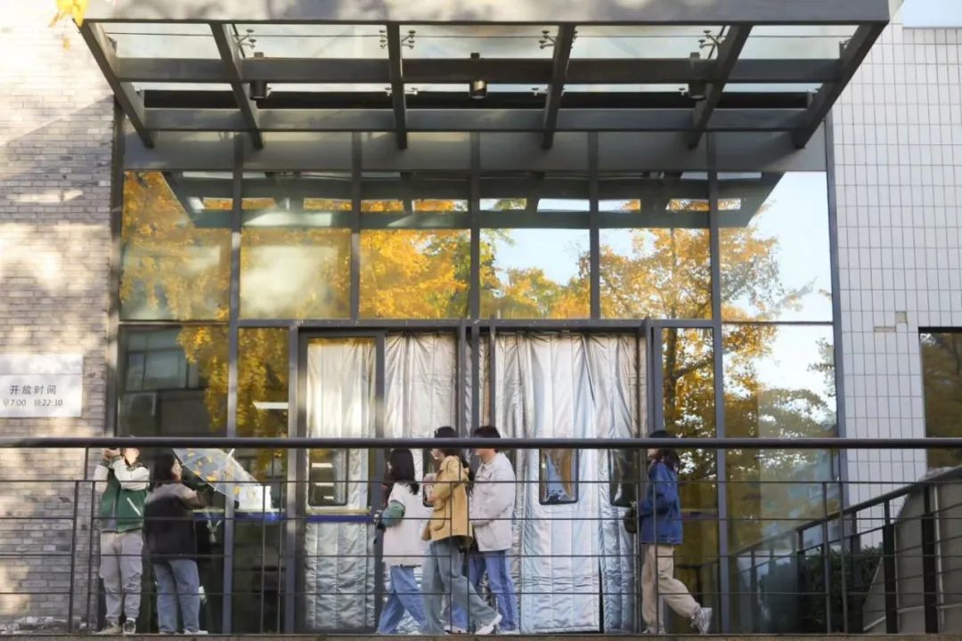晨雾氤氲,门帘轻摇师生携卷匆匆而过
