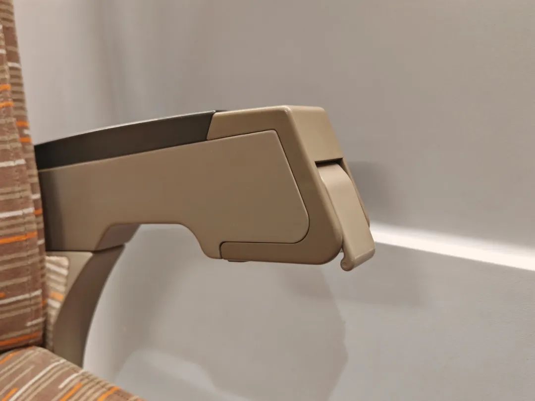 如需调节椅背的角度,可寻找扶手上的按钮,扳动或按动后,便可按照需求调节角度了。调节座椅靠背前,请观察一下后排小桌板上是否放置水杯等物品。小桌板