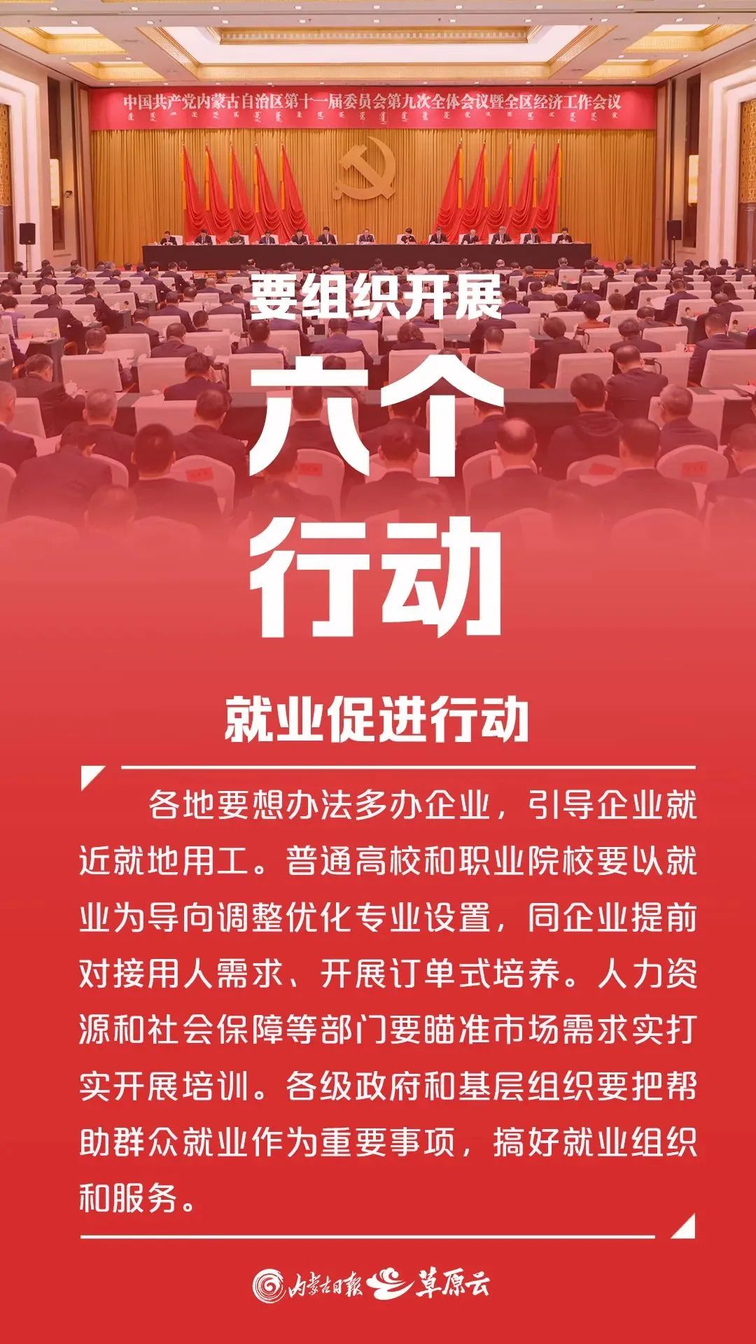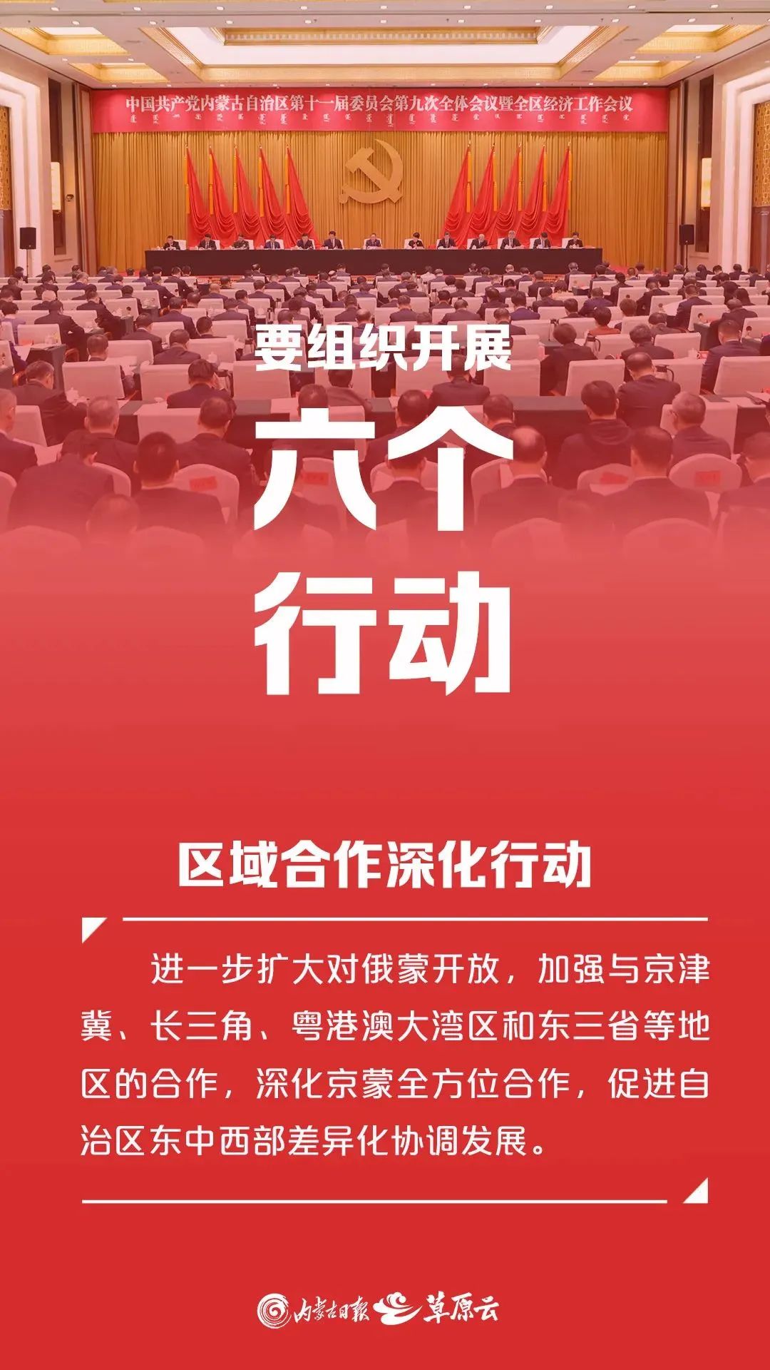 12月25日至26日,中国共产党内蒙古自治区第十一届委员会第九次全体会议暨全区经济工作会议在呼和浩特召开。全会强调,2025年,内蒙古要组织开展“六个行动”。