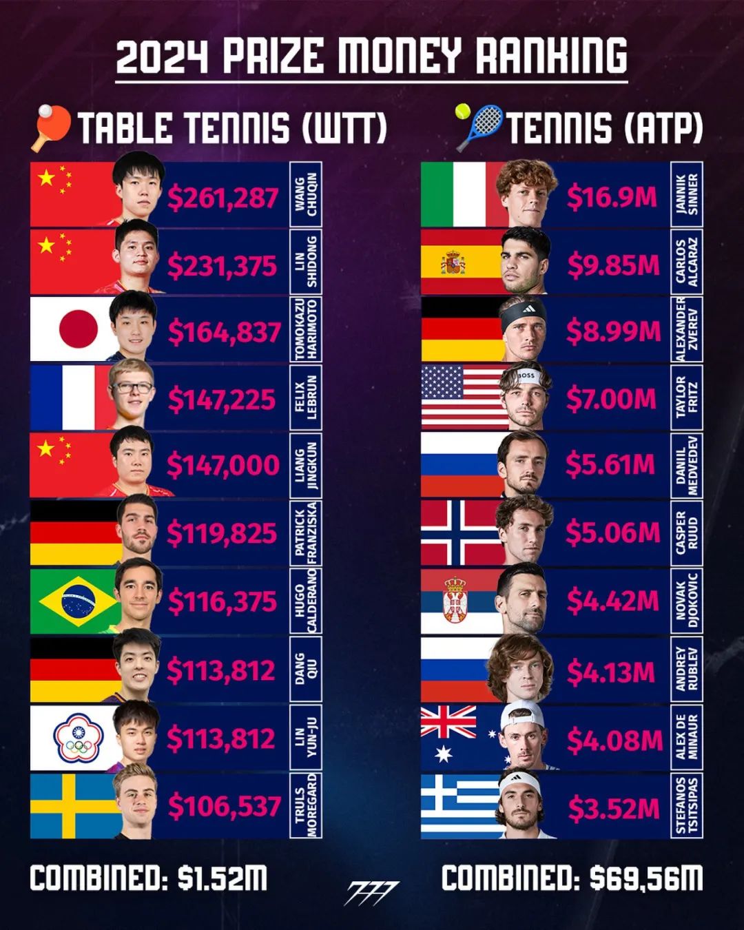 首先值得一提的是,WTT长久以来都有相应的对不参加比赛的罚款规定。今年的WTT赛事规则手册更新于12月20日,但对于运动员退赛罚款的规则并没有做改动,所以其实并非新规。