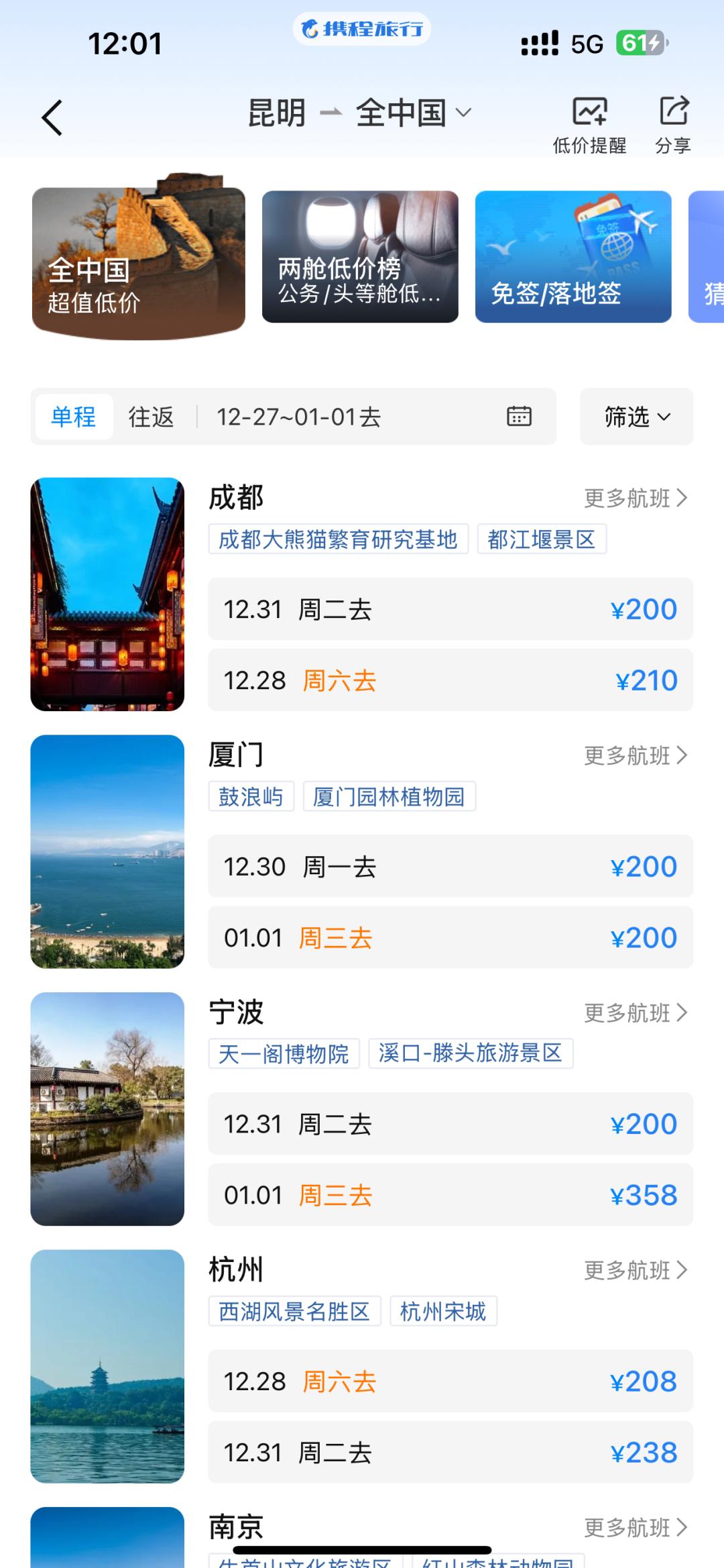 昆明到宁波降幅67%