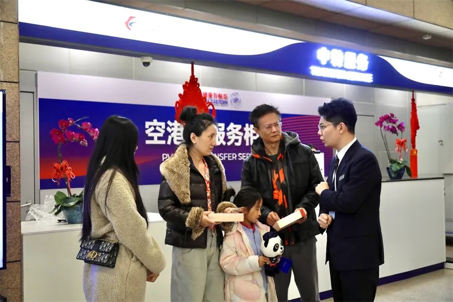 图:位于虹桥机场的东航空港通服务柜台 东航供图比如,一位从昆明出发的旅客想前往马赛游玩,需要在上海中转。由于时间和行程的原因,前序航班选择了东航“昆明—上海虹桥”航班,旅客到达上海虹桥机场后,在“空港通”服务柜台直接办理了值机和行李托运手续,领取东航免费赠送的上海市域机场线车票,仅需40分钟即可到达上海浦东机场,轻松乘坐后续东航“上海浦东—马赛”航班,开启便捷中转之旅。