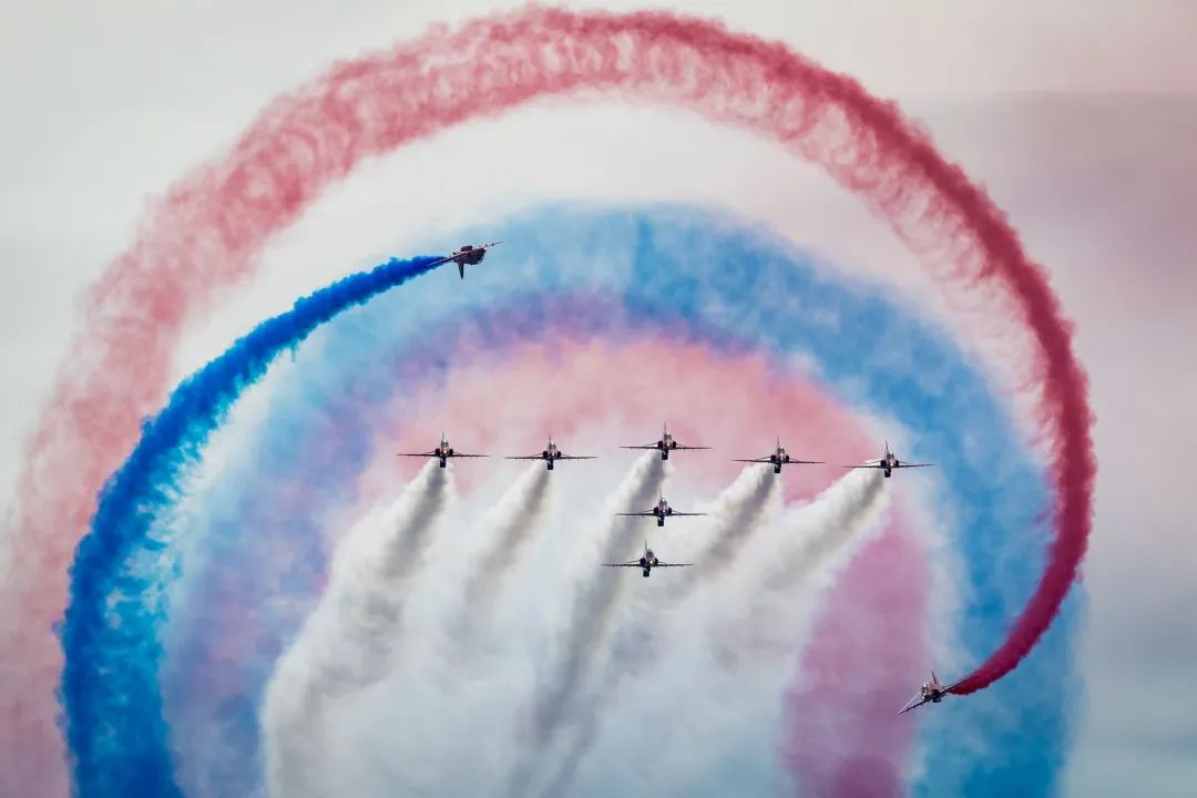 英国“红箭”飞行表演队在加拿大航展进行飞行表演。多款eVTOL彰显科技感