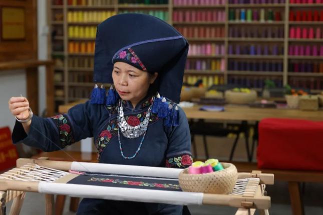许多绣娘原本务农,生活拮据。加入蓝淋的培训和工作体系后,她们不仅有了稳定收入,还传承了壮绣技艺。部分绣娘成为当地名人,激励更多年轻女性投身壮绣学习。