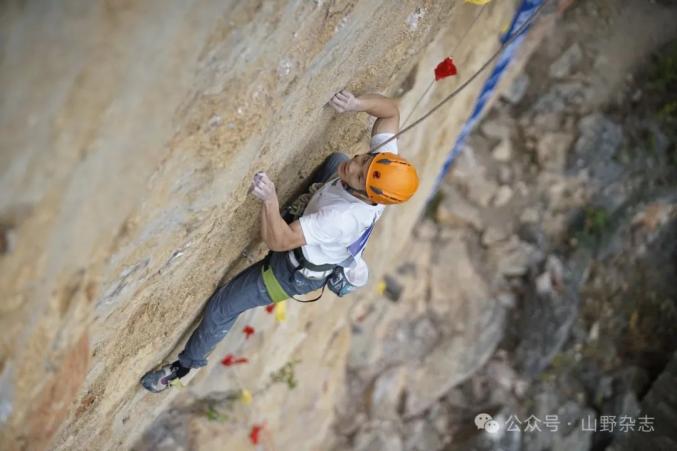 △洲际定线员、中攀阿成攀岩学校校长谢卫成在马山小镇岩壁攀岩