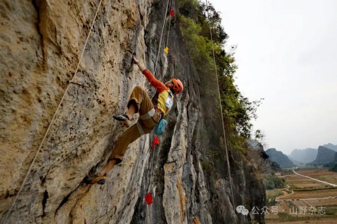 马山攀岩特色体育小镇是典型的喀斯特地貌,无数的石灰岩岩壁耸立在田野间,这里的一切冥冥之中似乎就是为了攀岩而存在。本次比赛的主定线员谢卫成是国内6位洲际定线员之一,是国内第一个完成5.14级别线路的攀岩者,在国内及国际比赛中担任定线员的场次超过100场。在他看来,本次比赛场地的岩壁接近性好、岩石结构丰富,配套设施完善,适合各种水平的岩友前往攀岩。