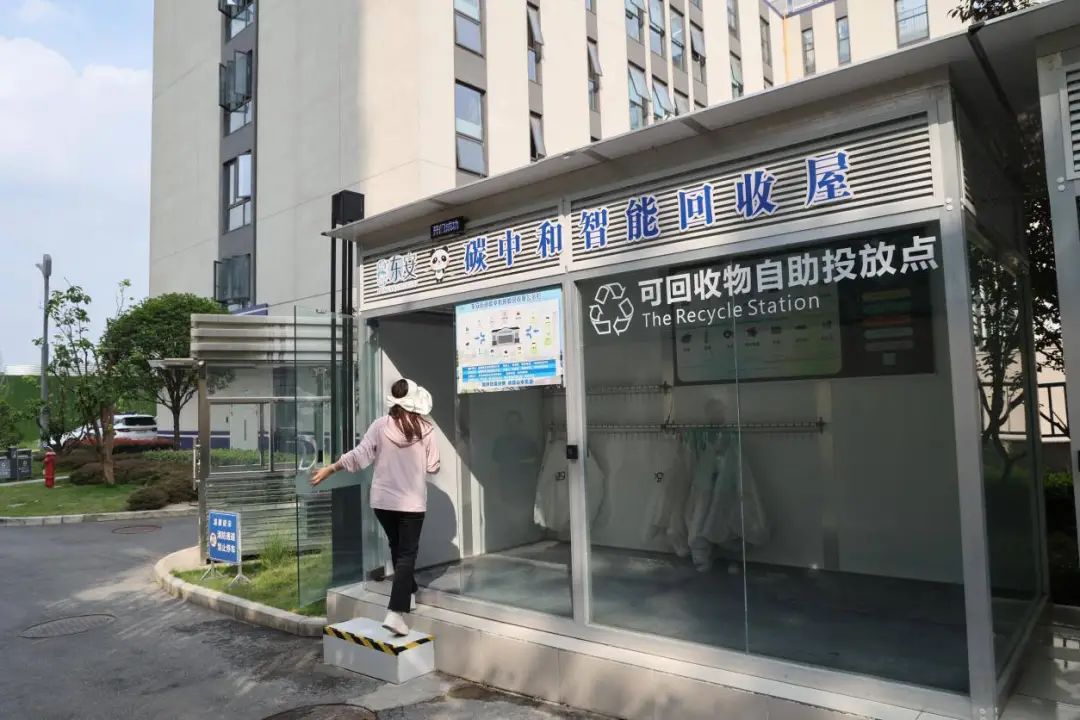 视线来到未来之城小区垃圾投放点,一座“碳中和”智能回收屋格外引人注目。这是一座通体透明的小屋,居民只需扫码即可开门,随后按照指引流程,便可以将家中的各类可回收物有序投放,实现有偿回收。