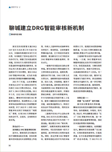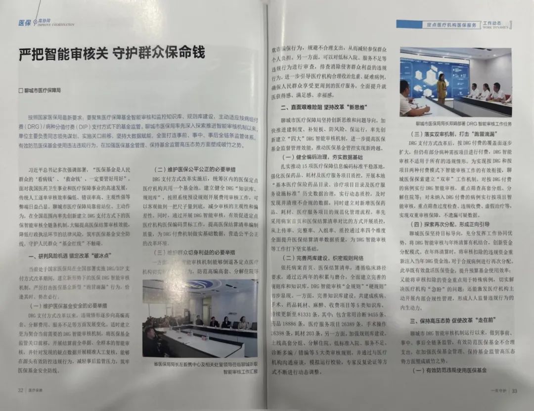 聊城市医保局坚持创新思维和问题导向,加快建制度、补短板、防风险、保运行,率先创新建立健全“四大”DRG智能审核机制,进一步提高医保基金监督管理效能,推动医保基金管理实现新跨越。